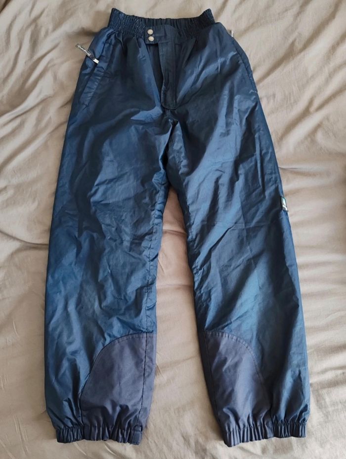 Très bon état, taille élastique, fermeture éclair et 2 boutons pression, toile et système imperméable en bas de jambes, Mesure à plat : Taille 32, extension jusqu'à 40 cm à plat Longueur d'entrejambe 72 cm