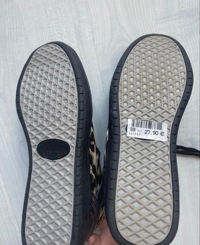 Baskets à lacets, motif léopard, de la marque Ki.Té.Toi Jamais portées, dans leur boîte d’origine Taille 39 Semelles comme neuves (regarder dernière photo) Achetées 27,90€ Coutures extérieures rose #baskets #leopard #femme #motifléopard