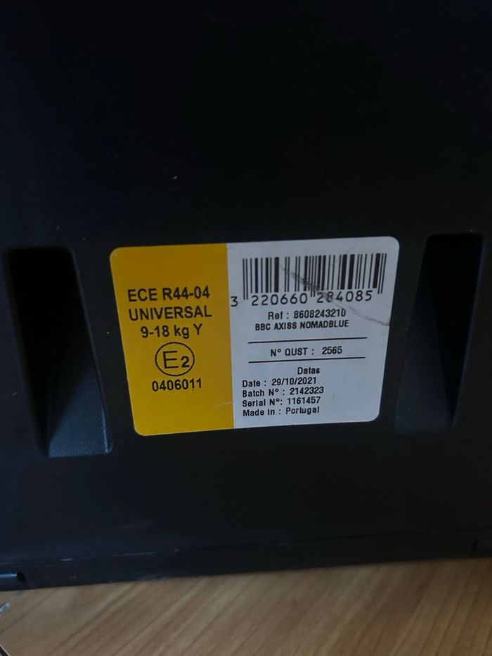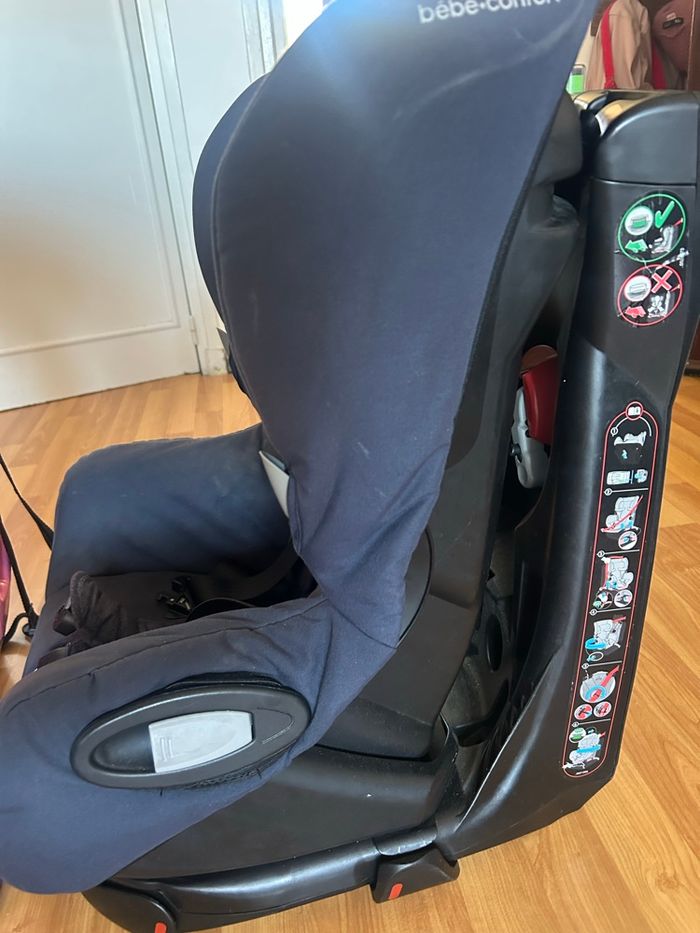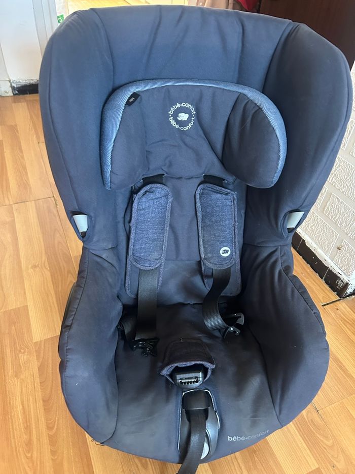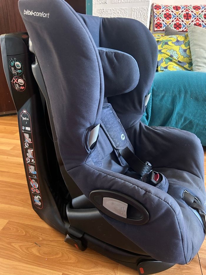 Siège auto Bébé Confort Axiss – Groupe 1auto pivotant en très bon état. 9 kg à 18kg ( 9 mois à 4 ans) Aucun choc. Très pratique. Sans isofix Quelque traces d’usure au niveau des jambes voir logo en photo. Utilisé pour un seul enfant. On vient de tout nettoyer. Aix en provence nord. Siège auto pivotant et inclinable, idéal pour bébés et jeunes enfants. Âge d’utilisation : de 9 mois à environ 4 ans Poids de l’enfant : de 9 à 18 kg Orientation : face à la route Installation : avec la ceinture de sécurité du véhicule et tendeur intégré Système pivotant : rotation à 90° pour faciliter l’installation et la sortie de l’enfant Inclinable : 8 positions d’inclinaison pour plus de confort Réglage pratique : ajustement simultané du harnais et de l’appuie-tête à une seule main Poids du siège : 11,75 kg Couleur : Nomad Blue Siège très sûr, confortable et pratique au quotidien, idéal pour faciliter l’installation de l’enfant en voiture.