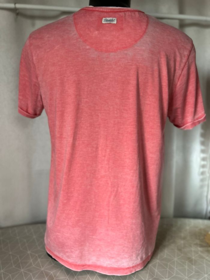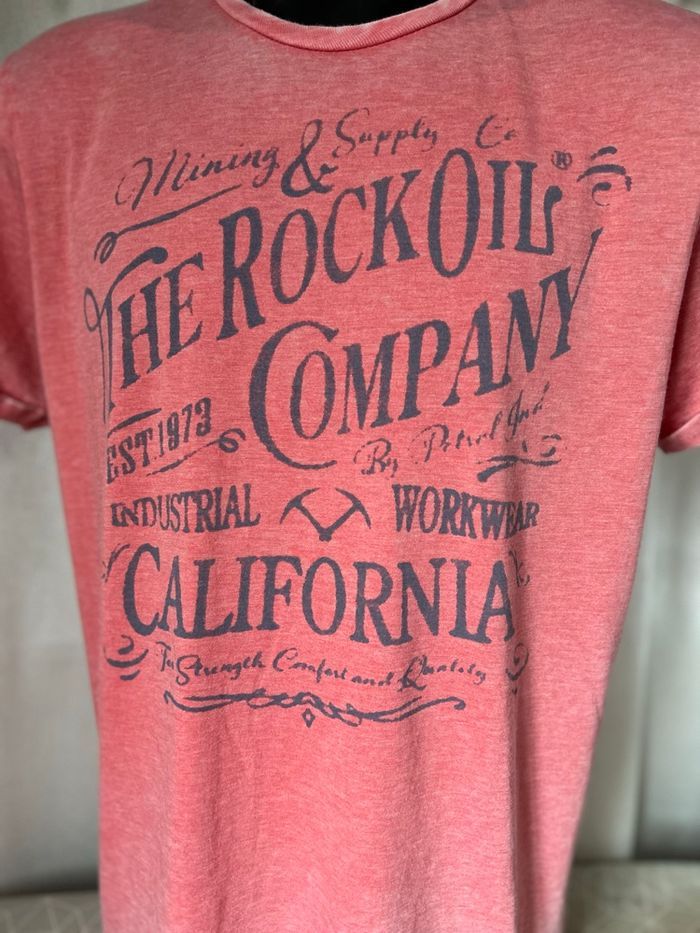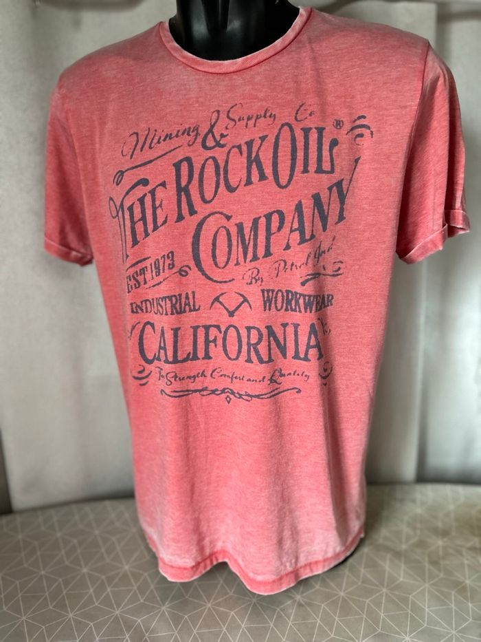 T-shirt rose rock company california Hyper doux et souple au toucher Manches courtes avec revers Taille L 52% coton 48% polyester Petrol Industries Co Carrure 47 cm Aisselle à aisselle 55 cm Longueur 70,5 cm
