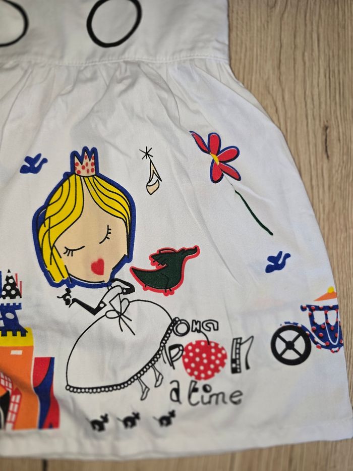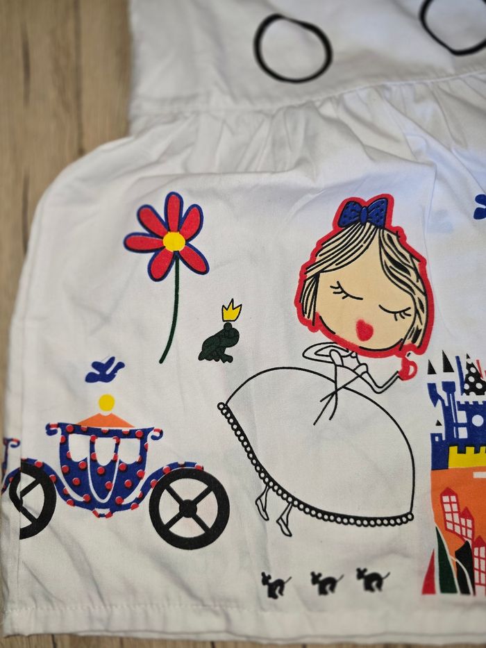 Robe blanche originale avec dessin style princesses. Taille : 24 mois, 90 cm Très bon état