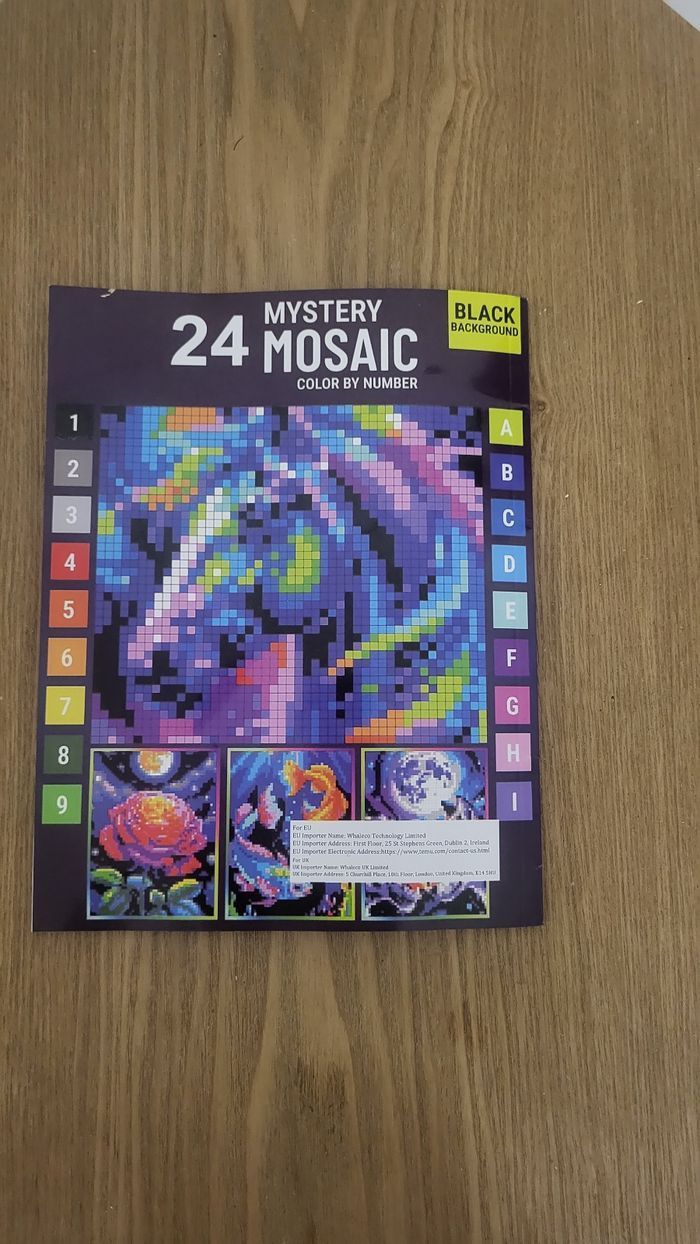 Livre de coloriage Mystery Mosaic , il y a 24 motifs en tout ( 1 en cours et 1 fini) Il y a des cases carrés et des triangles. Très agréable à faire, bien relaxant Pixel art , coloriage au numéro , coloriage mystère, coloriage by number Pour l'envoi si vous pouvez choisir relais colis, ce serait vraiment gentil. Merci