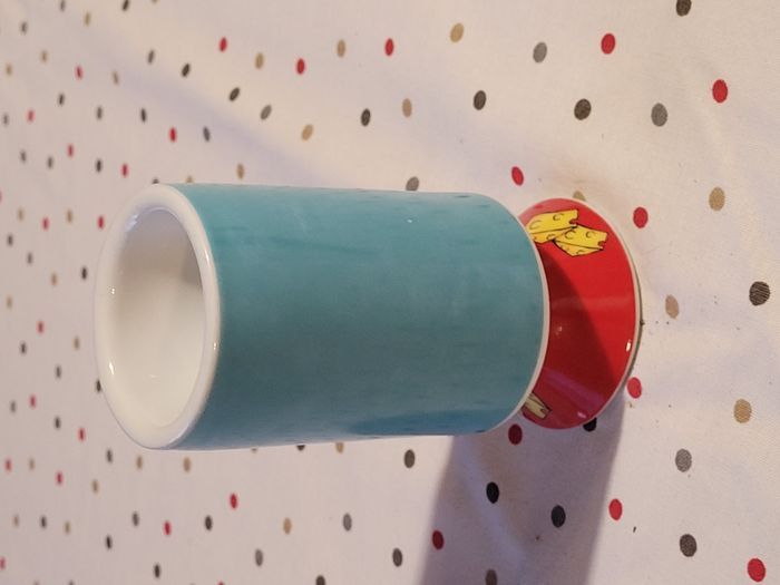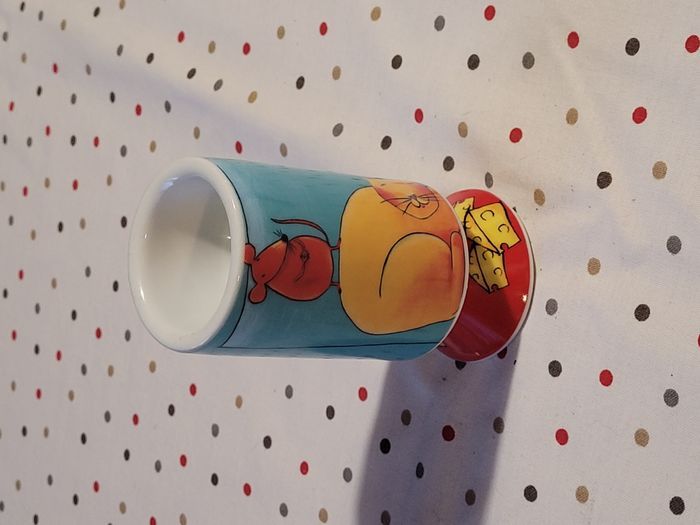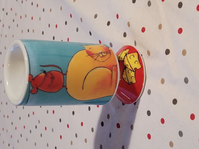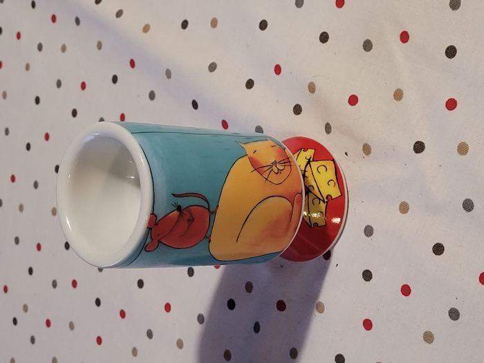 motif souris sur le dos d'un chat qui dort en porcelaine hauteur 11 cm