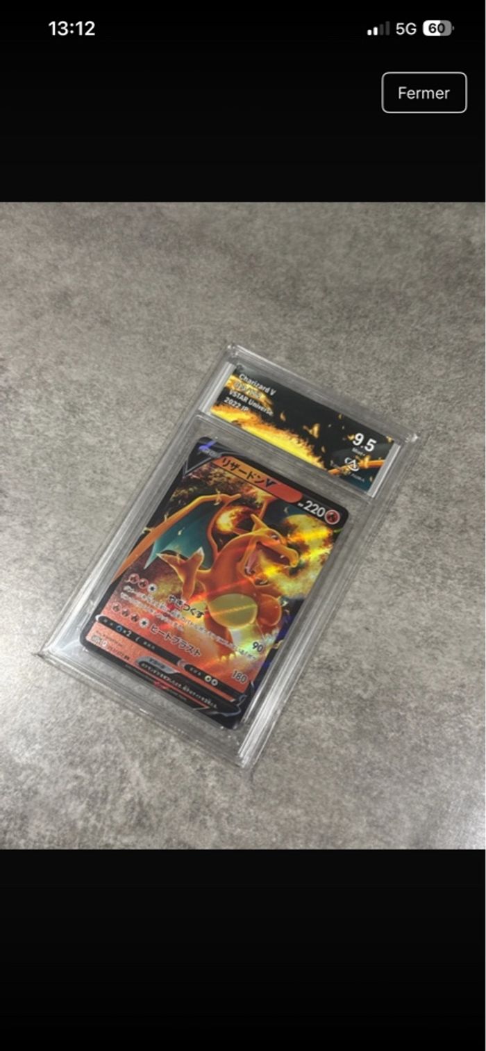 carte Pokémon dracaufeu ultra rare gradé 9.5 envoie protéger