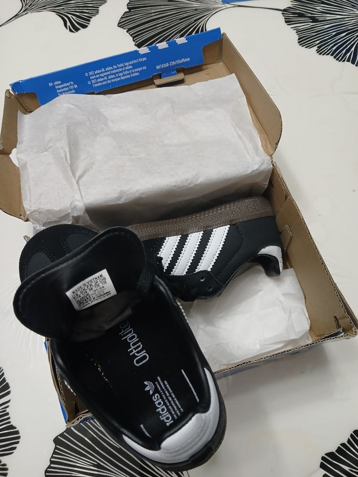 Adidas samba neuve enfant taille 29. Couleur noir et blanche sans lacet. Ce sont des élastique. Envoie rapide