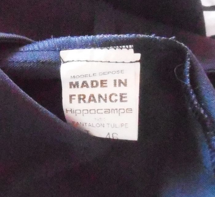 Pantalon de tailleur femme, marque Hippocampe (Paris, haute gamme), made in France, taille 46/XXXL, couleur bleu foncé (marine), coupe droite, jambes larges, fermeture éclair et boutons, possibilité de passer une ceinture. Tissu fluide, agréable à porter. Mesures à plat : longueur 95 cm, largeur 46 cm. très bon état. Style professionnel et élégant !