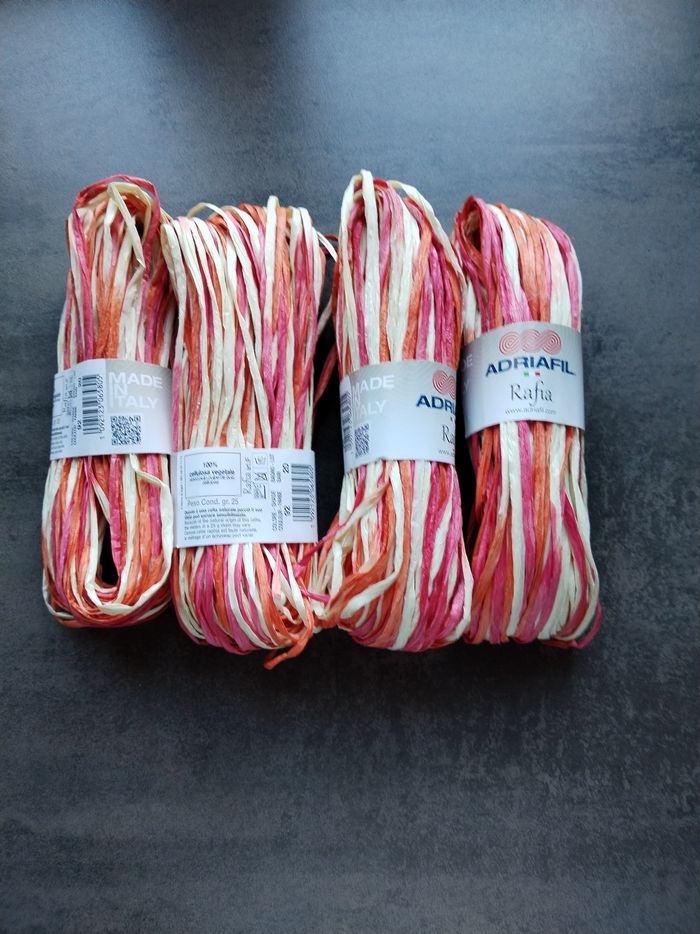 Lot de 4 écheveaux de fil Rafia de la marque italienne Adriafil. C'est un fil haut de gamme, 100% naturel (cellulose végétale), idéal pour vos créations de printemps et d'été. Sa texture est souple, douce et beaucoup plus agréable à travailler que le raphia de jardin traditionnel. ​Marque : Adriafil​ Coloris : 92 (un magnifique "Summer Red" ou Corail nuancé, avec de jolis dégradés) ​Lot : 20 ​Composition : 100% cellulose végétale (pulpe de bois) ​Poids/Longueur : Environ 25g par écheveau (soit 100g au total) / ~60m par unité ​Outils conseillés : Crochet 5 mm (ou aiguilles 10 mm pour un rendu très aéré) Idéal pour réaliser : Des accessoires tendance comme un chapeau (bob/bucket hat), un petit sac de plage, une pochette, des sets de table ou des ceintures. Le fil est résistant et lavable à la main ! ​État : Neufs, avec bagues d'origine. ​📦 Envoi rapide et soigné. N'hésitez pas à faire un lot avec mes autres articles pour économiser sur les frais de port !