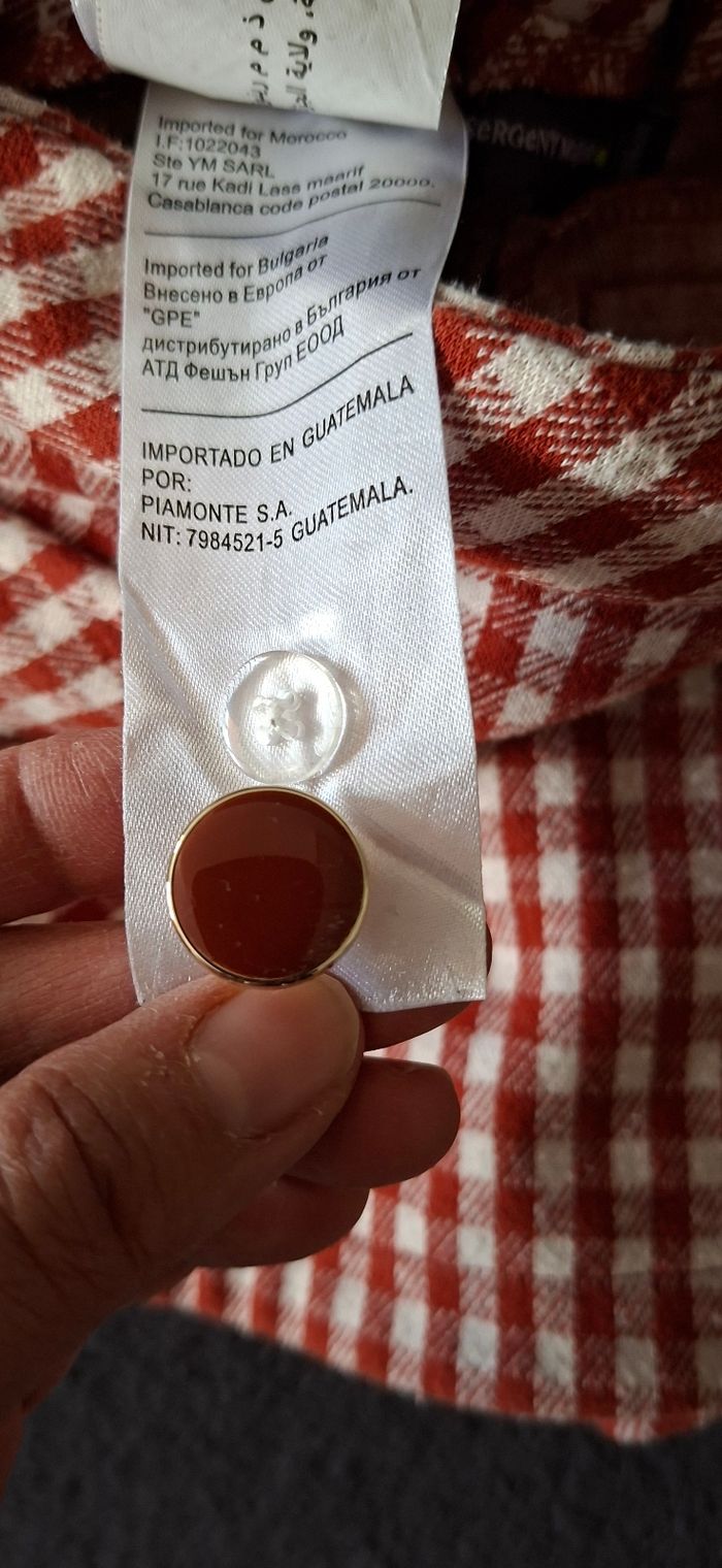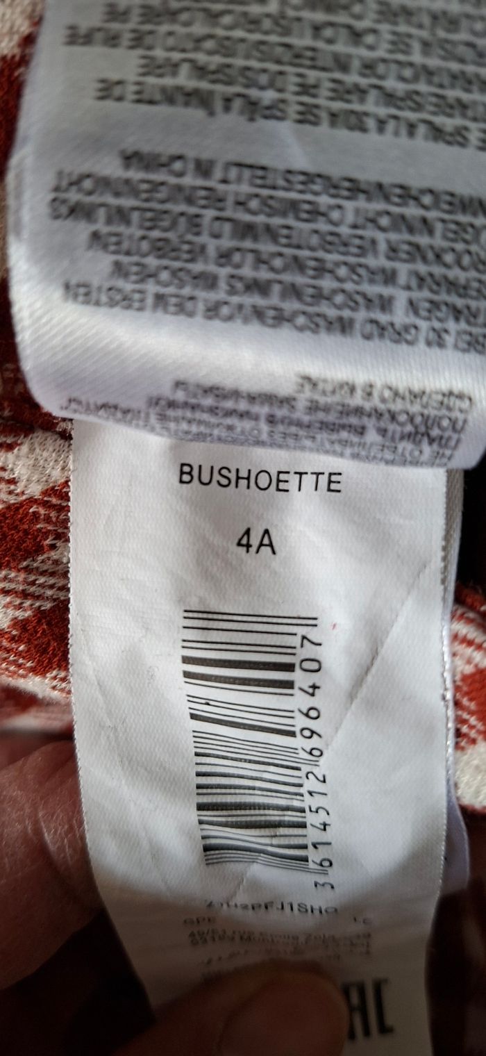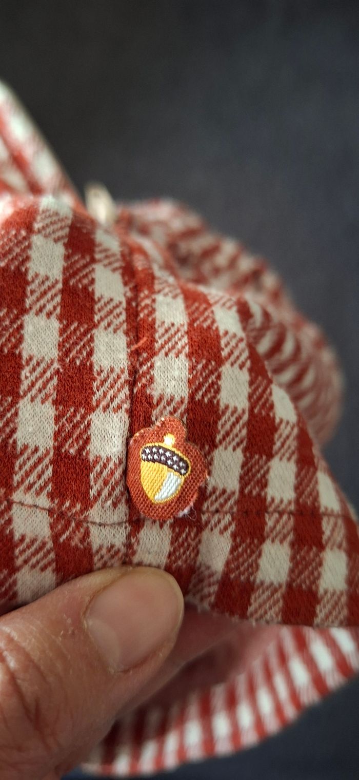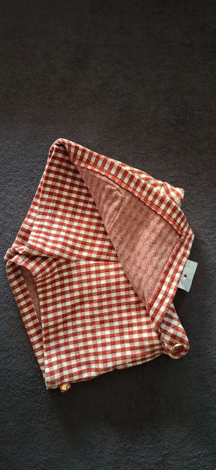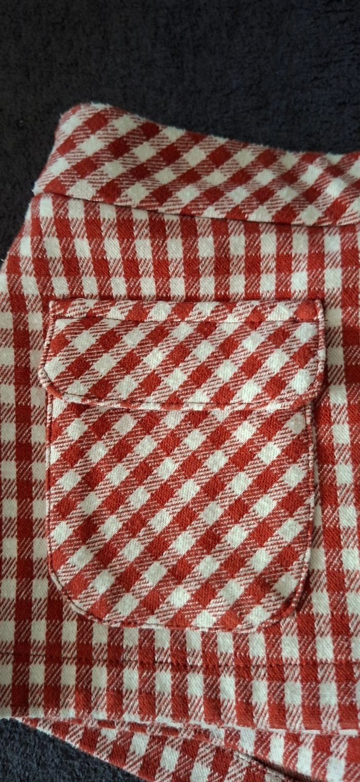 Jupe short carreaux marron brique et blanc . Pour fillette de 4 ans , 104 cm . 1 petite poche avant . 2 poches arrière. Matière polyester , coton et élasthane ;Joli bouton marron et doré sur le côté ; très chic . Élastique sur la taille avec une fermeture éclair sur le côté.