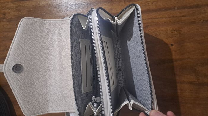 Petit sac avec bandoulière amovible état neuf 2 pochettes avec 1 à l intérieur qui se ferme 21x15cm