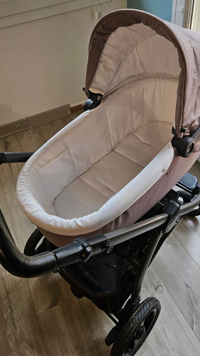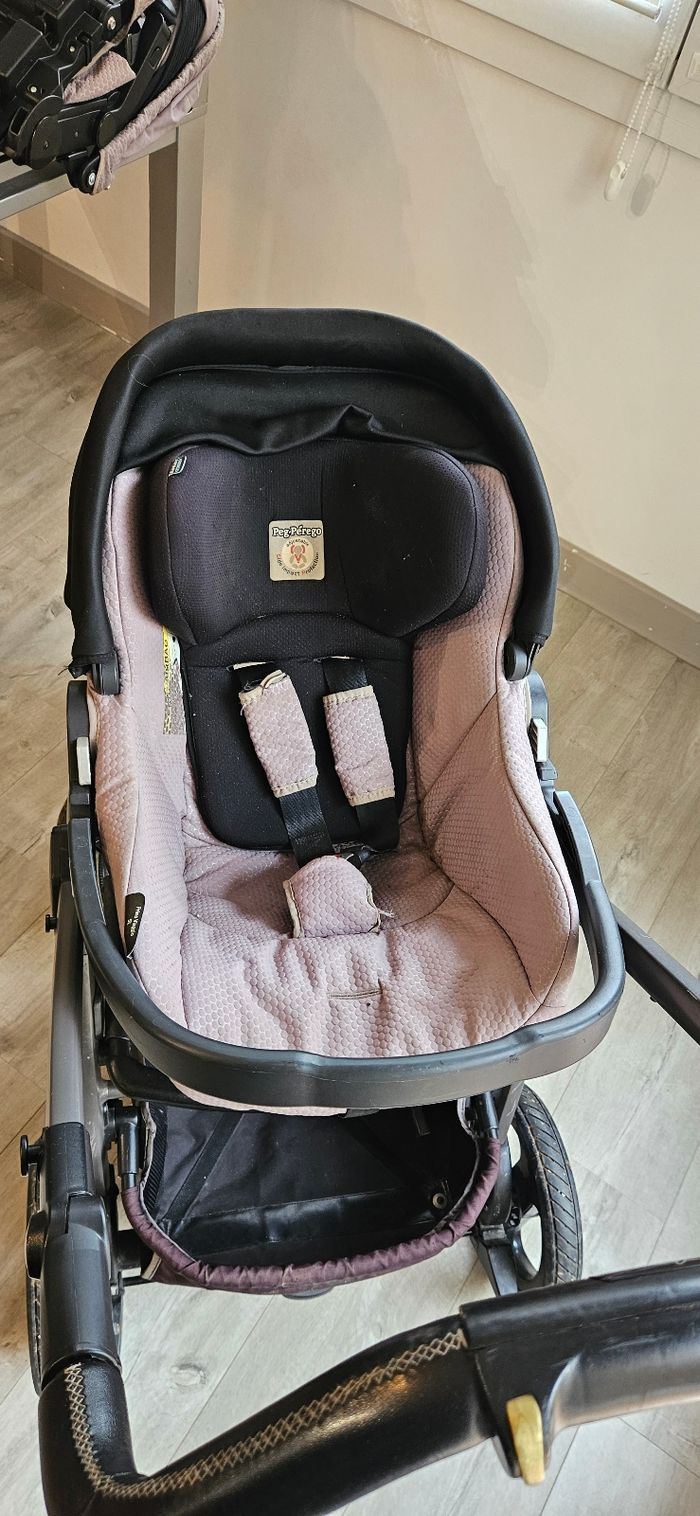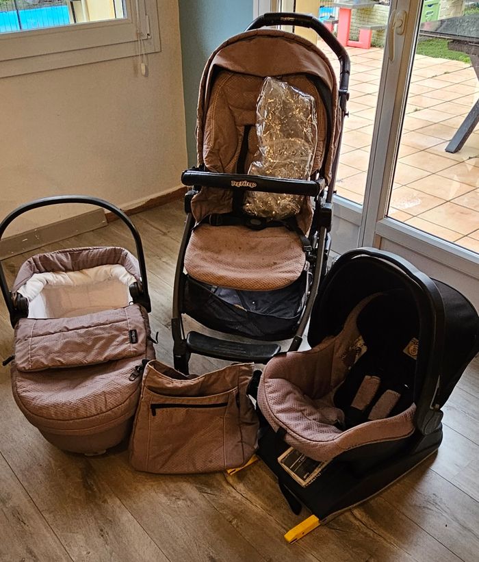 poussette Peg Perego Trio, système 3-en-1 comprenant nacelle, poussette et cosi, idéale de la naissance jusqu’à environ 3 ans. Ensemble robuste, confortable et pratique. Composition Nacelle : confortable pour nouveau-né Poussette : siège réversible face parent / face route Siège auto (cosy groupe 0+) avec la base isofix Châssis pliable, maniable et stable Bon état général (traces d’usage normales) Toujours entretenue, non fumeur Fonctionne parfaitement