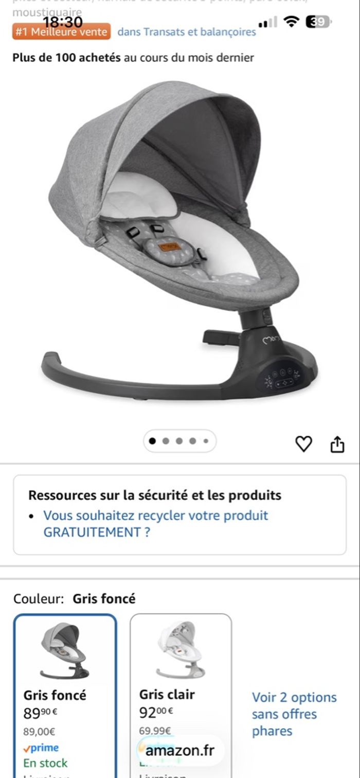 Transat balançoire électrique, jusqu’a 9kg, neuf jamais servit pour mon fils. Télécommande + Bluetooth. 5 niveaux de vitesses, minuterie de 8,15 ou 30 minutes.