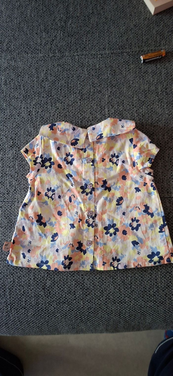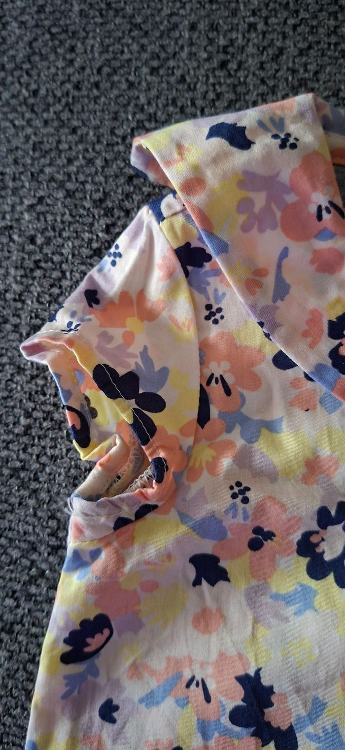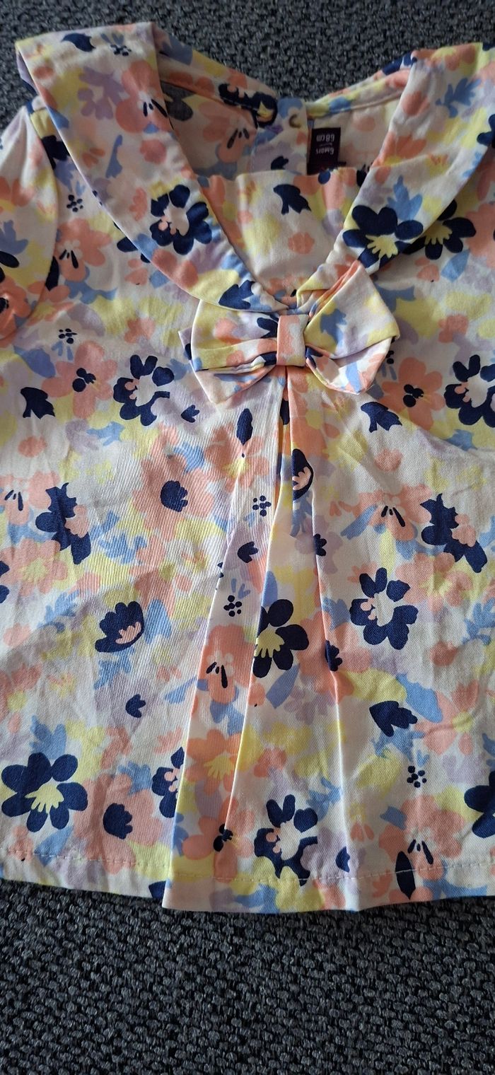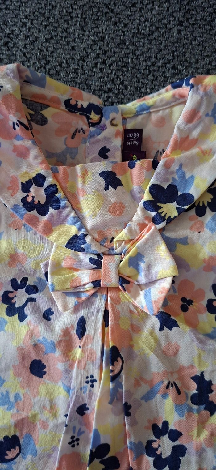 Jolie robe fleurie. Couleurs fraîches et estivales. Beau col et nœud de papillon. Boutons à l arrière .(un peu rayé) Peu portée. Très bon état.