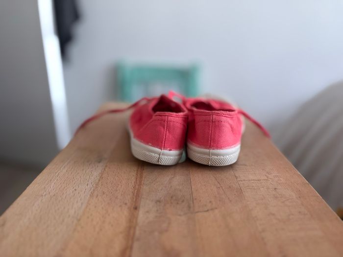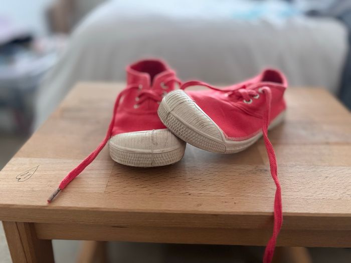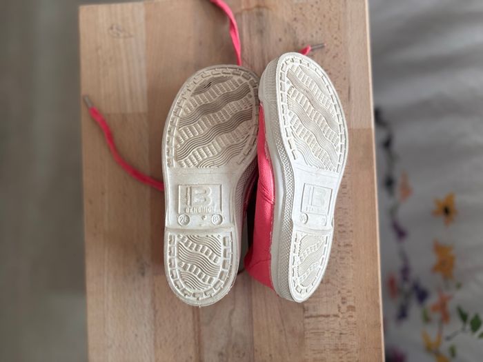 Paire de baskets Bensimon pour enfant, taille 26, couleur corail. 👟 Détails : • Marque : Bensimon • Taille : 26 • Couleur : corail • Fermeture : lacets • État : très peu portées • Semelles très peu usées (voir photos) Chaussures confortables et légères, idéales pour le quotidien. Envoi rapide et soigné N’hésitez pas à regarder le dressing ☺️ ‼️Photo et vidéo de l’emballage‼️
