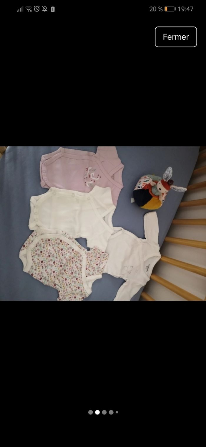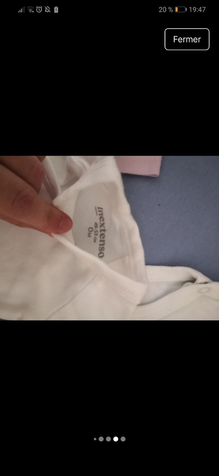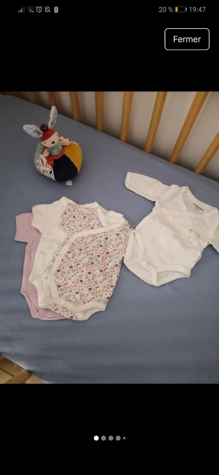 Lot de 4 bodies naissance 3 bodies jamais portés mais lavés une fois après achat, InExtenso, manches courtes 1bodie manches longues Vertbaudet en très bon état