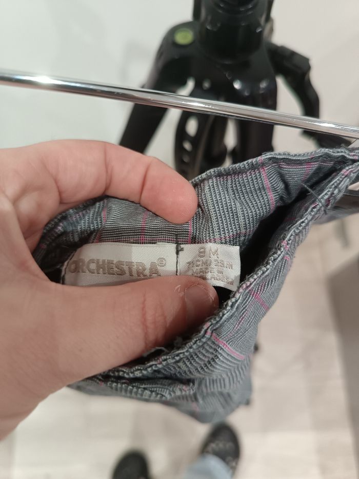 Adorable pantalon bébé Orchestra taille 9 mois, en très bon état. Couleur gris avec fines rayures roses et joli petit motif fleuri brodé sur le bas. Matière douce et confortable, parfait pour le quotidien ou une tenue plus habillée. Réglable sur le côté. Maison non-fumeur 🚭 Envoi rapide 📦