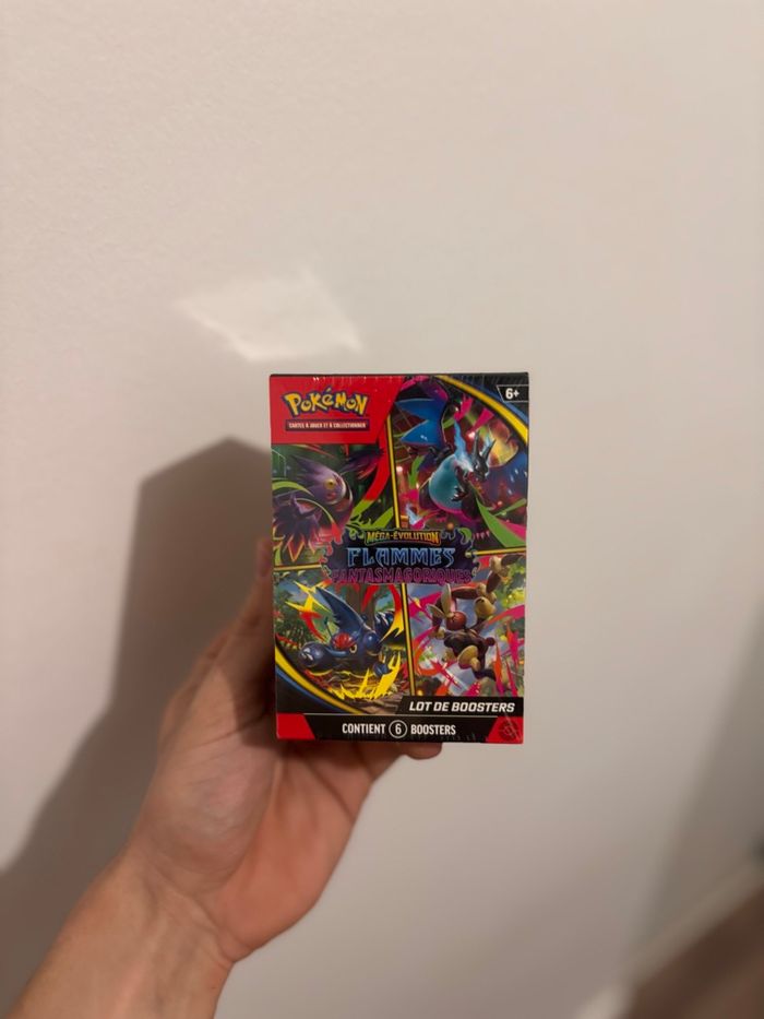 Bundle Pokémon lot de 6 boosters Mega évolution Flammes Fantasmagoriques Coffret neuf et scellé, pour plus de photos n’hésitez pas ! Envoi rapide et soigné 😉