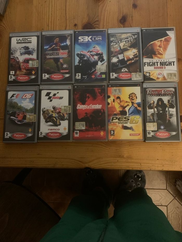 PSP 1004 très bonne état marche nickel cordon d’alimentation pas d’origine mais marche bien. 13 jeux avec boite et 1 jeux sans boite. Toute les maquettes des jeux sont en Italien et la notice aussi . Envoi rapide et soigné. #psp #jeuxpsp