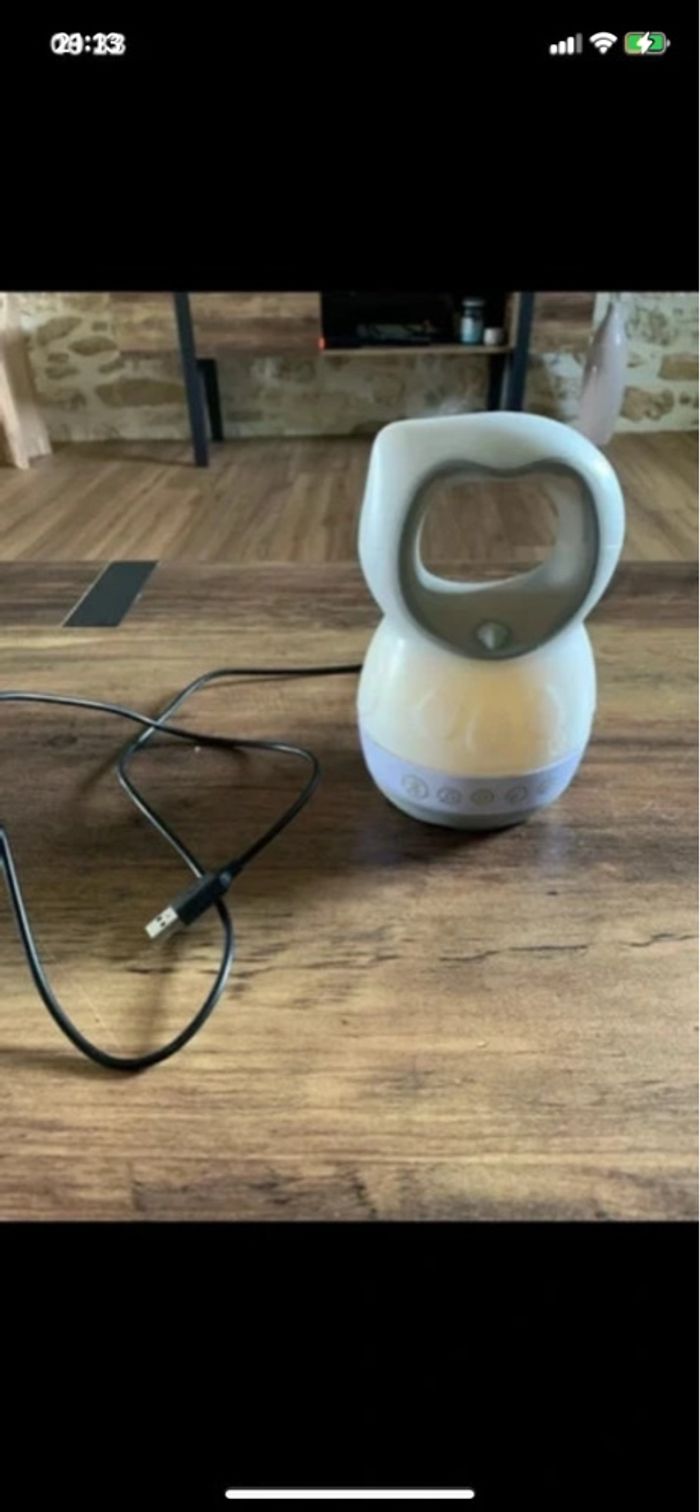 Veilleuse musicale et lumineuse Quelques musiques et bruits blancs sont incluses Possibilité de mettre histoires, musiques… en Bluetooth avec votre téléphone Se transport en lanterne quand ils sont plus grands