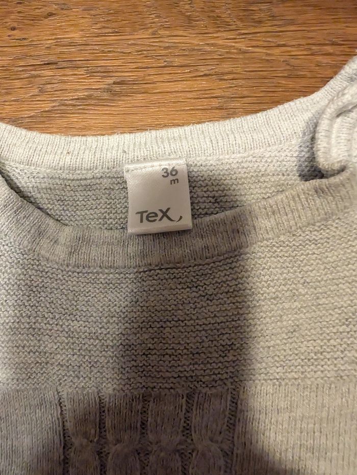 Robe pull Tex, 36 mois. En bon état mais un peu bouloché par endroits.