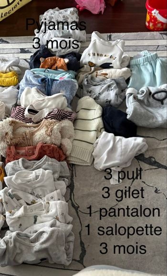 pyjama 3 mois 13 Pyjama 1 mois 7 Pyjamas 0 mois 2 Gilet 3 mois 3 Ensemble 1 mois 2 Gilet 1 mois 3 salopette 3 mois 1 body 3 mois 10 Body 1 mois 2 Body 0 mois 1 pull 3 mois 3