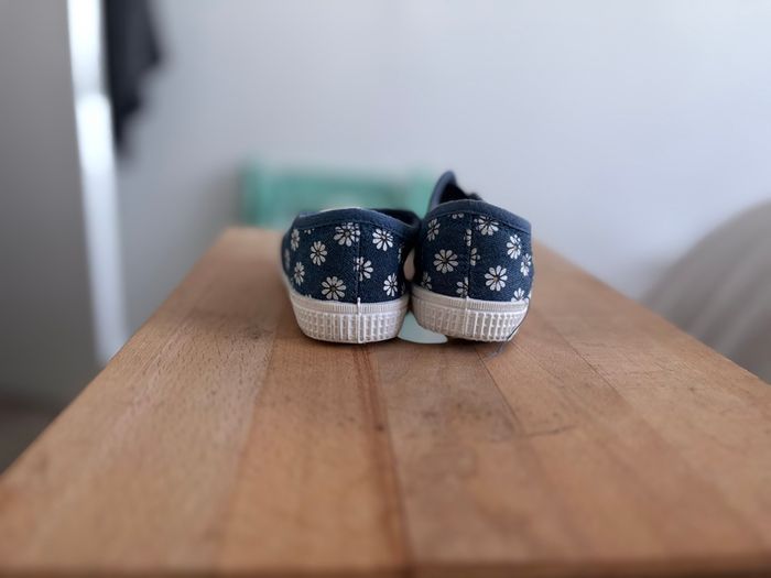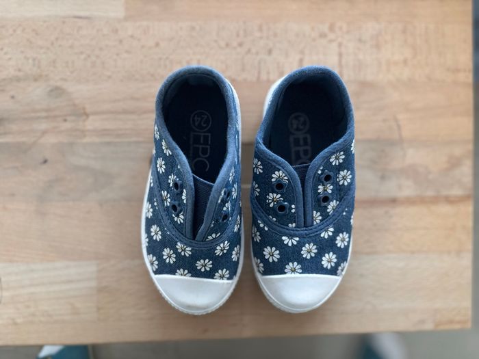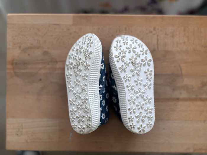 Vends jolies chaussures enfant pointure 24, en très bon état. Motif fleuri blanc sur fond bleu, semelles souples et antidérapantes, idéales pour les premiers pas ou l’école. 👟 Peu portées 👣 Semelles propres et en bon état (voir photos) Envoi rapide et soigné ‼️Photo et vidéo de l’emballage avant envoi ‼️ N’hésitez pas à regarder le dressing ☺️