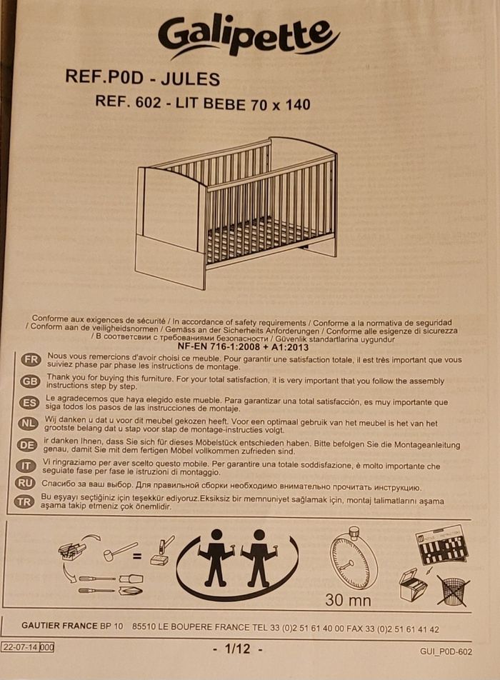 Lit enfant 140×70 barrières et barres pour quand ils sont plus grand .