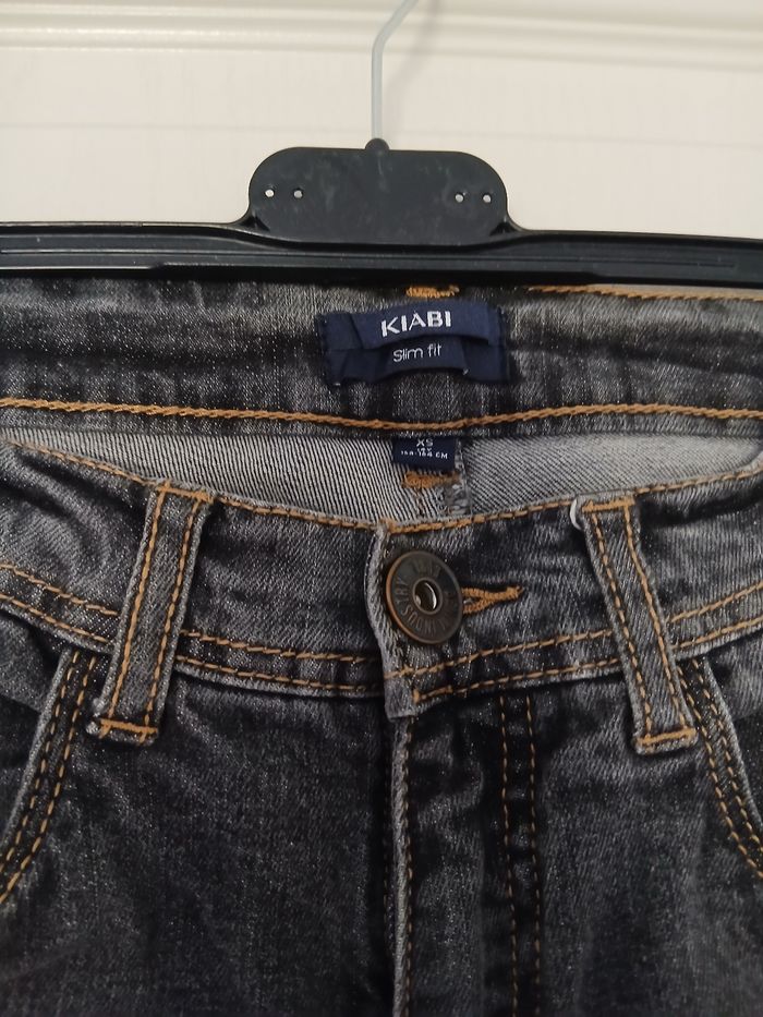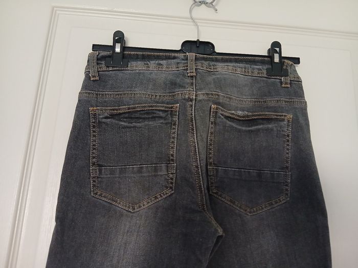 Jean garçon slim fit, gris, en coton et élasthane. 36 cm de largeur de taille à plat 101 cm de longueur