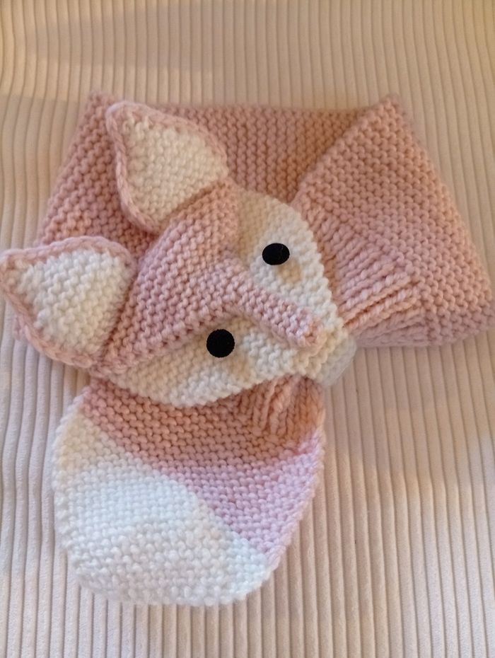 Tour de cou Renard 🦊, tricoté main, laine Looping de chez Phildar (douce, ne pique pas) taille unique conviendra au bébé jusqu'à 6 ans et plus Longueur totale 63, Largeur 12 Pas de négociation de prix beaucoup de temps et d'amour pour la confectionner