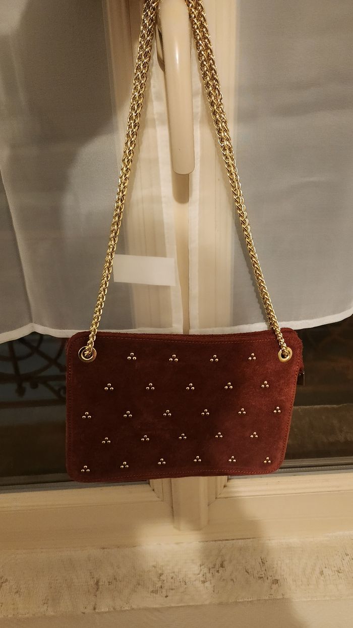 Magnifique sac femme Sans marque Jamais portee Tout neuf Couleur bordeaux et doré Clous doré sur le devant La chaînette Couleur doré Envoi en mondial relay
