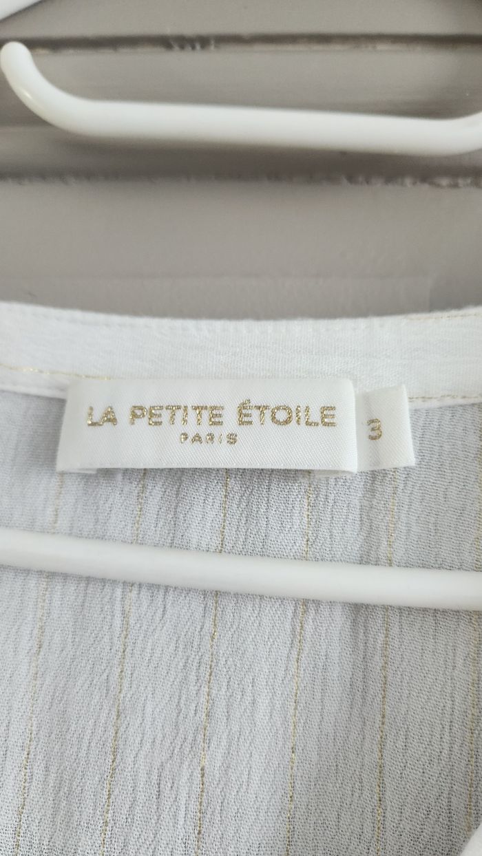 Tres belle chemise femme Marque La Petite Étoile Jamais portee En parfait état Couleur écru et doré Taille 3 Envoi en mondial relay