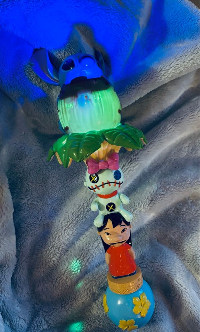 Bâton à bulles lumineux stitch de Disneyland Paris, il est NEUF, on a du l’essayer juste pour faire les photos pour le vendre ☺️ Environ 43cm C’est stitch qui fait des bulles dans la noix de coco 😄 Il y a un curseur pour les bulles, la lumière et OFF Vous pouvez faire des bulles à l’infini avec stitch 🫧