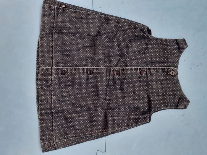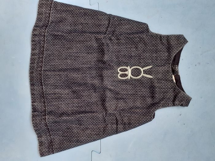 Vends Robe en jean (boutons pression dos) + tee-shirt manches longues (pressions sur épaule gauche) + pull molletonné (boutons pression dos, petite tache, voir photo)