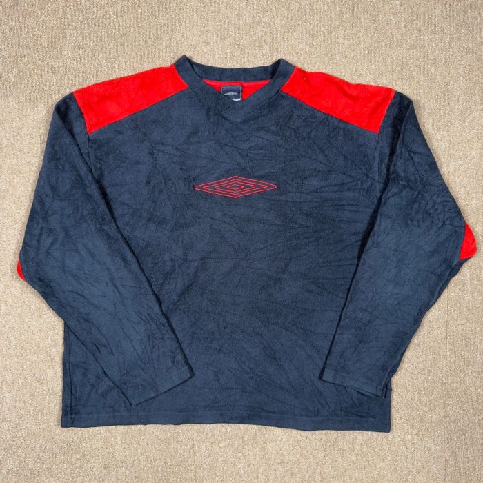 Pull polaire Umbro vintage bleu marine et rouge taille Large - photo numéro 1