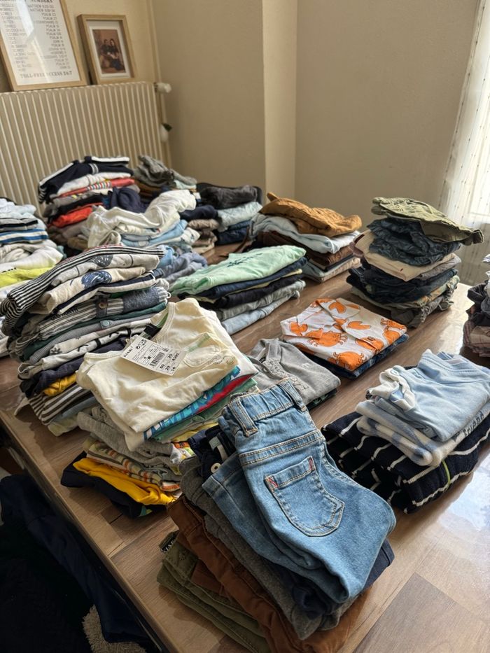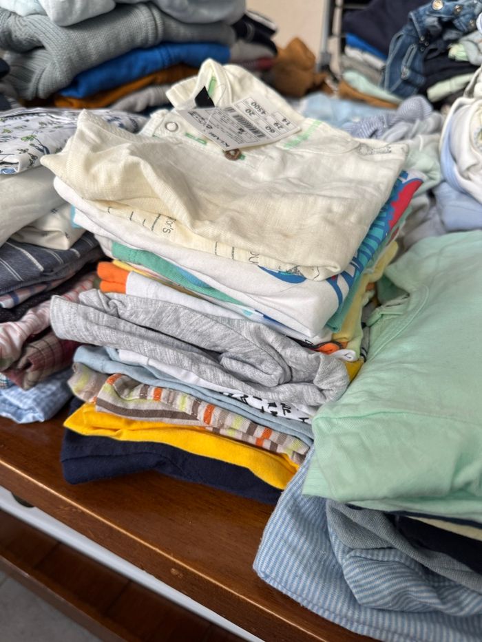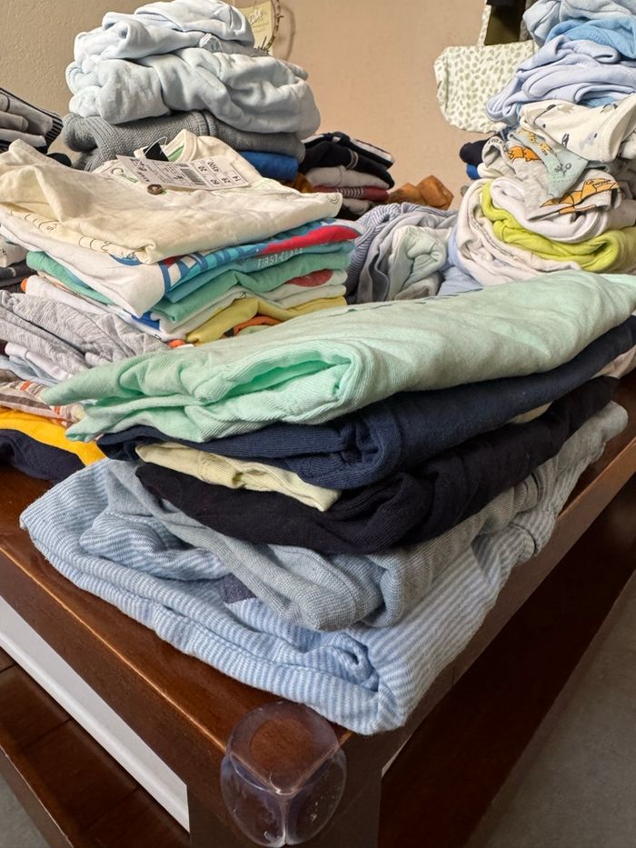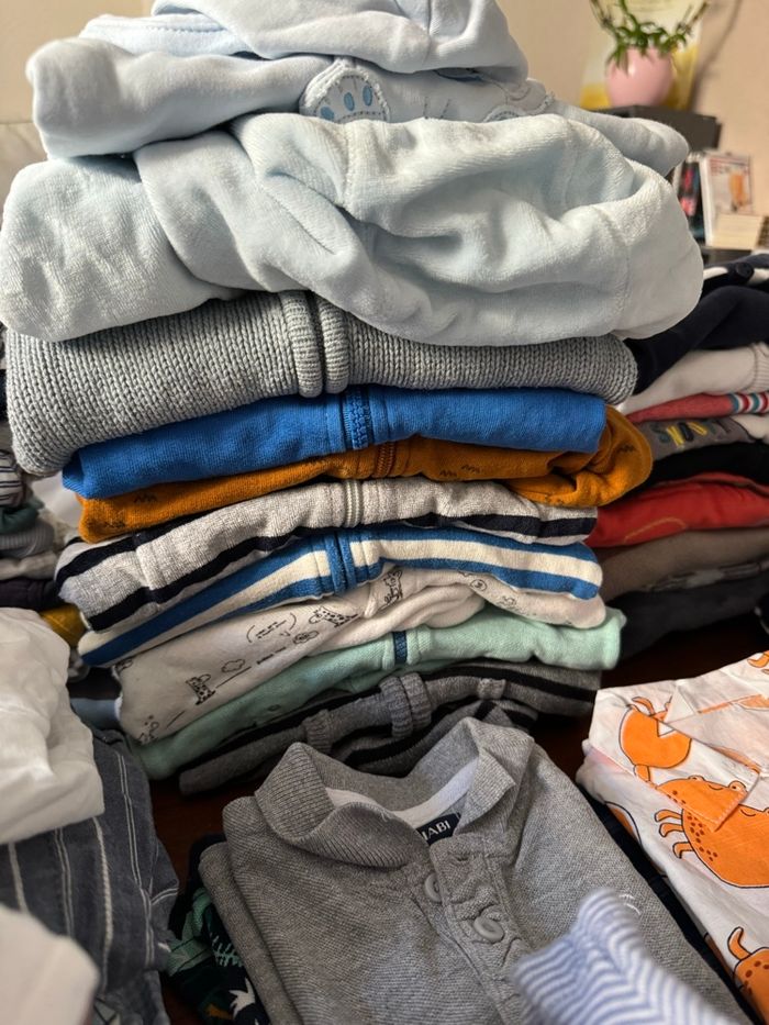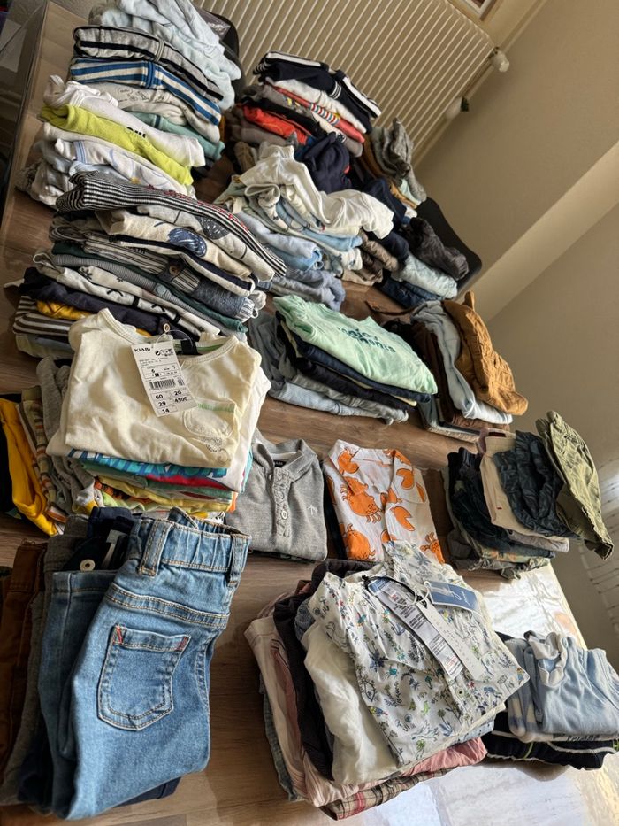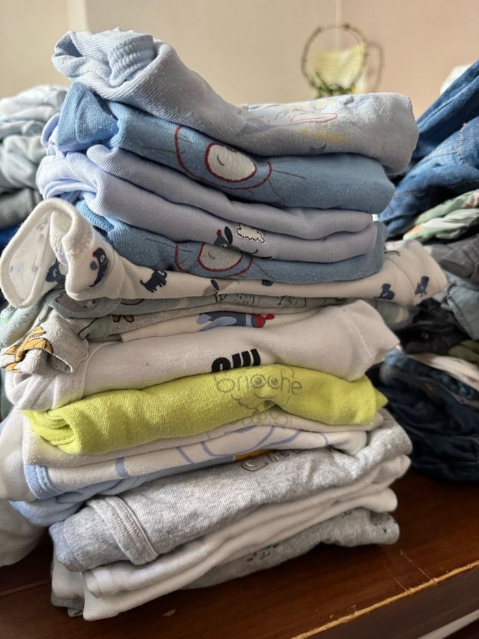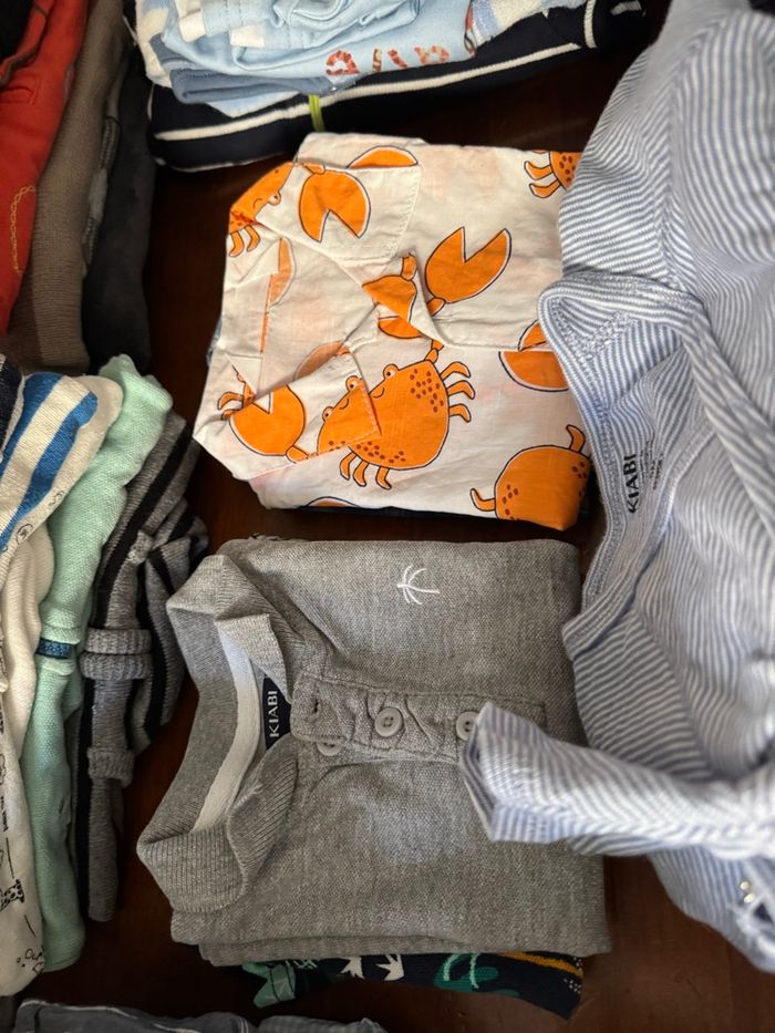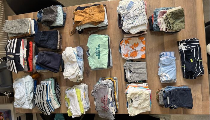 Lot de vêtements en 6 mois Idéal pour refaire la garde robe de bébé Toutes saisons : Été : - 14 shorts 🩳 - 16 chemises (2 MC + 14 ML) 👔 - 2 polos (MC)👕 - 3 combinaisons short -6 pyjamas en coton - 16 T-shirts MC 👕 - 6 salopettes short - 14 body MC Mi saison : - 26 pantalon/ jean 👖 - 20 pull et gilet - 1 combinaison manches longues - 6 salopettes - 10 body ML - 20 T-shirt ML - Une gigoteuse (manches amovible) - Un manteau🧥
