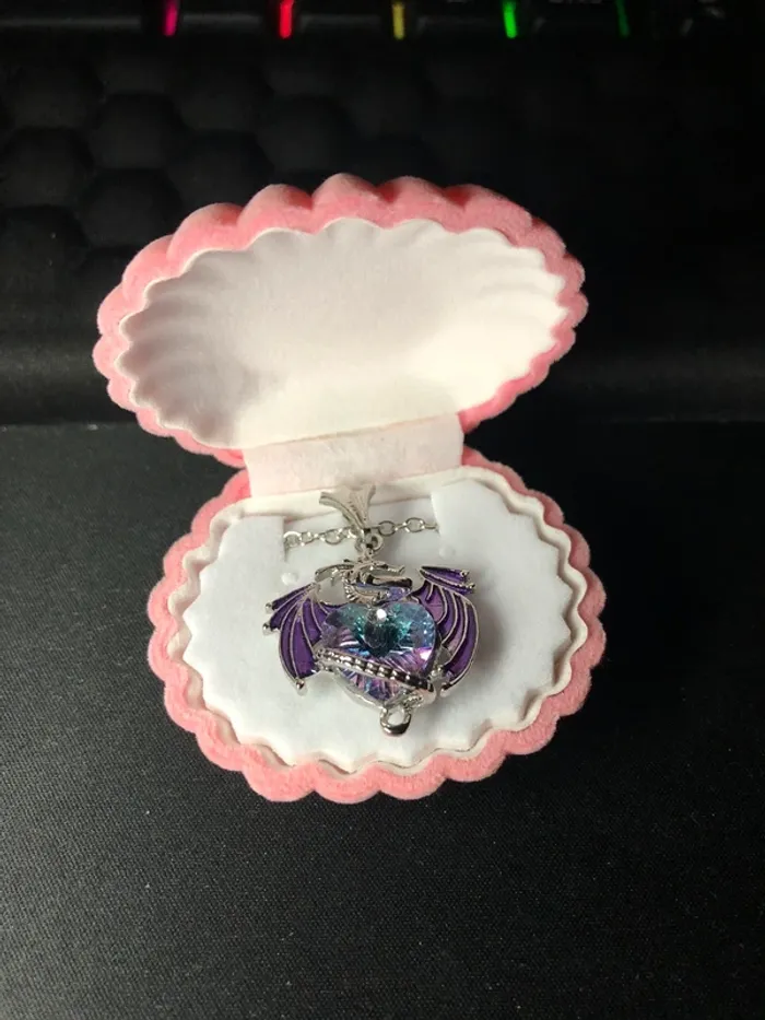 Collier dragon cœur + boîte à bijoux coquillage ✅ Neuf 📦 Envoi rapide et bien protégé