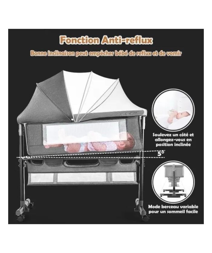 Lit Bébé Berceau Cododo pour Bébé 0-36 Mois, Hauteur Réglable Lit Cododo avec Moustiquaire Panier de Rangement Roues - Gris Dimensions : 90 x 50 cm Matières : Métal et tissu Poids : 8kg Age (A partir de) : 0 mois - Naissance Jusqu’à 36 mois Acheter y’a meme pas 9 mois