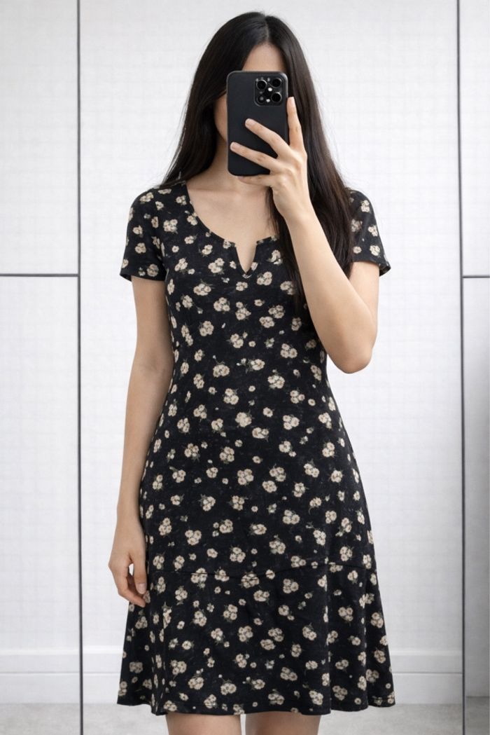 Robe Zara Fleurie Noir  - photo numéro 1