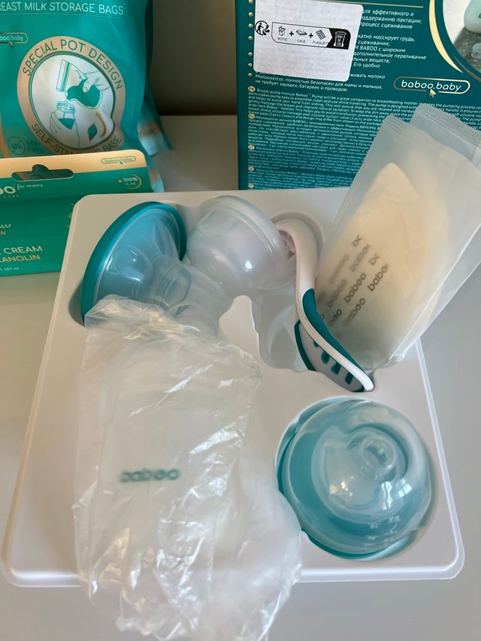 Tire lait manuel neuf vendu avec 4 poches pour mettre le lait et une crème pour les seins spécial allaitement. Tout est neuf, jamais utilisé.