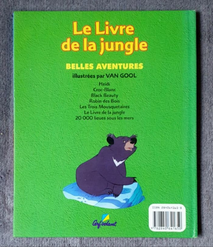 Résumé : La Panthère Bagheera découvre dans la jungle un jeune enfant abandonné. Elle décide de le confier à une famille de Loups qui l'élève comme un louveteau. Alors que Mowgli a 10 ans, le Tigre Shere Kahn approche du territoire des Loups. Pour éviter à l'enfant une fin inévitable, les Loups l'éloignent et décident de le confier aux Hommes d'un village proche. C'est Bagheera qui le conduit. Pendant leur voyage, ils feront de nombreuses rencontres, parfois redoutables.. Année de parution : 1999. Auteur original : Rudyard Kipling. Illustrateur : Van Gool. Collection : Belles Aventures. Éditions : Cerf-volant. =) 24 pages. En très bon état général! Juste de très légères traces d'usage sur couverture (à peine visibles). L'intérieur du livre est nickel!