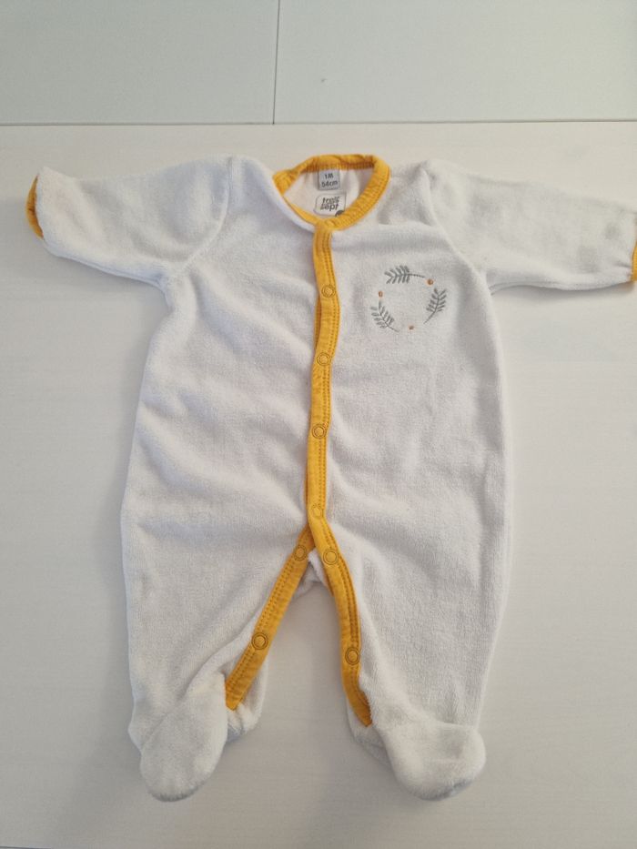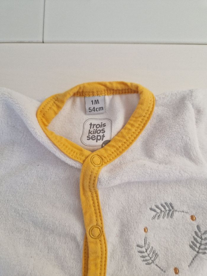 Lot de deux pyjamas bébé de la marque "Trois kilos sept" taille 1 mois soit 54 cm, en velours. Déjà utilisé mais nickel