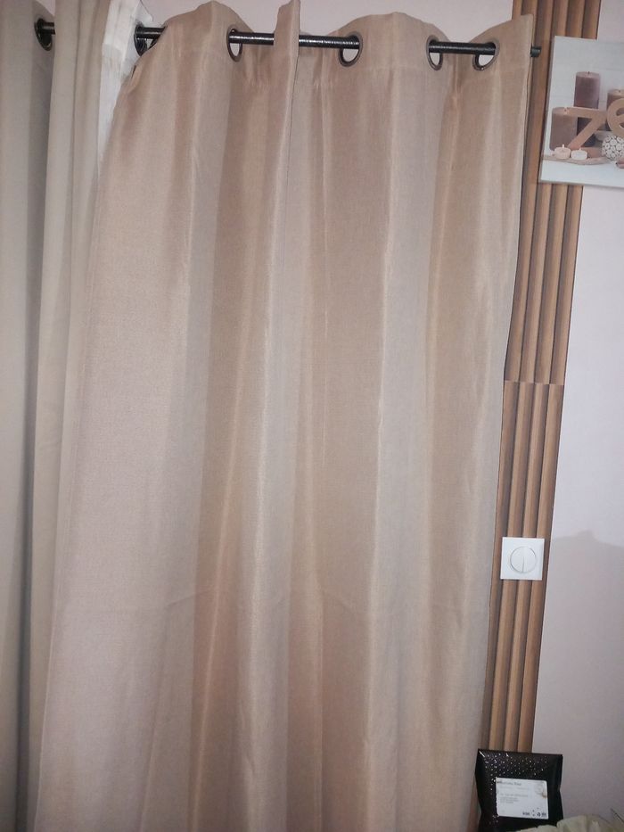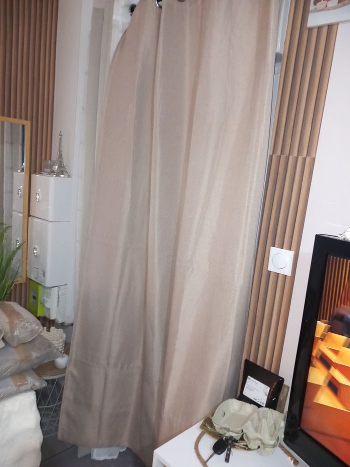 1 paire de double rideau occultant en très bon état, un ourlet de 43 cm fait au thermocollant donc facile à enlever. Ils ont très peu servi. Largeur : 1,40 cm Hauteur : 2,60 cm Hauteur avec ourlet thermocollant : 2,17 cm #doublerideaux