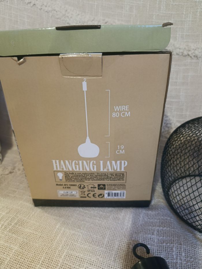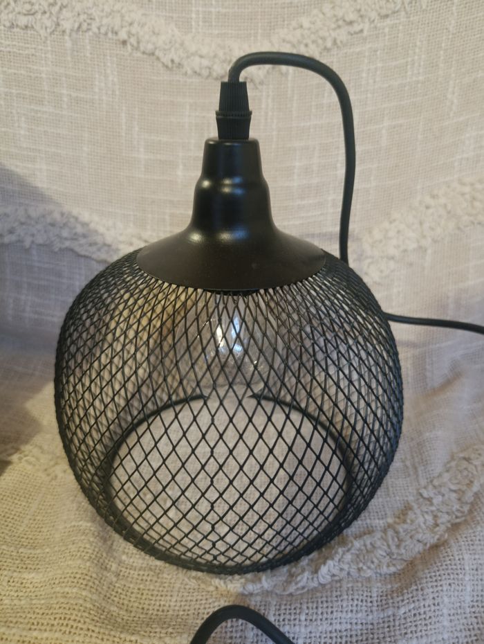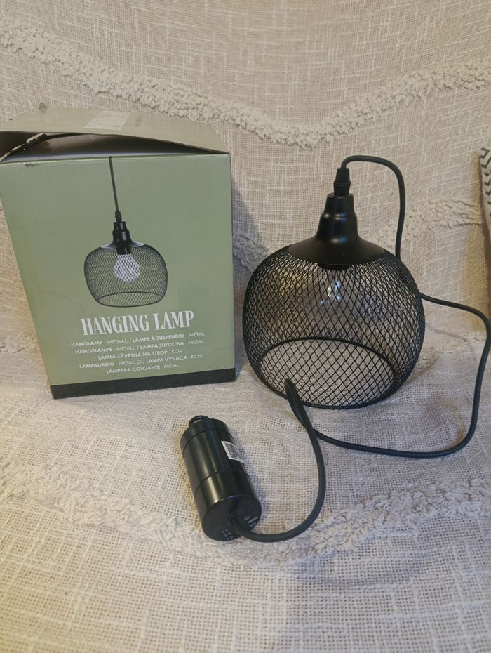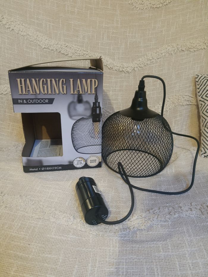 Suspension neuve, jamais utilisée, encore avec sa boîte ✨ Lampe en métal noir au design moderne et tendance, parfaite pour une déco intérieure ou extérieure (salon, terrasse, balcon, chambre, entrée…). Diffuse une lumière blanc chaud pour une ambiance cosy et chaleureuse 🖤 🔌 Câble de 80 cm 📏 Dimensions : Ø 18 x H 19 cm ⏱️ Fonction timer intégrée 🏠 Utilisation intérieur & extérieur 🎁 Idéale pour compléter une déco moderne ou industrielle 👉 Envoi rapide 📦 👉 Retrouvez d’autres articles dans mon dressing