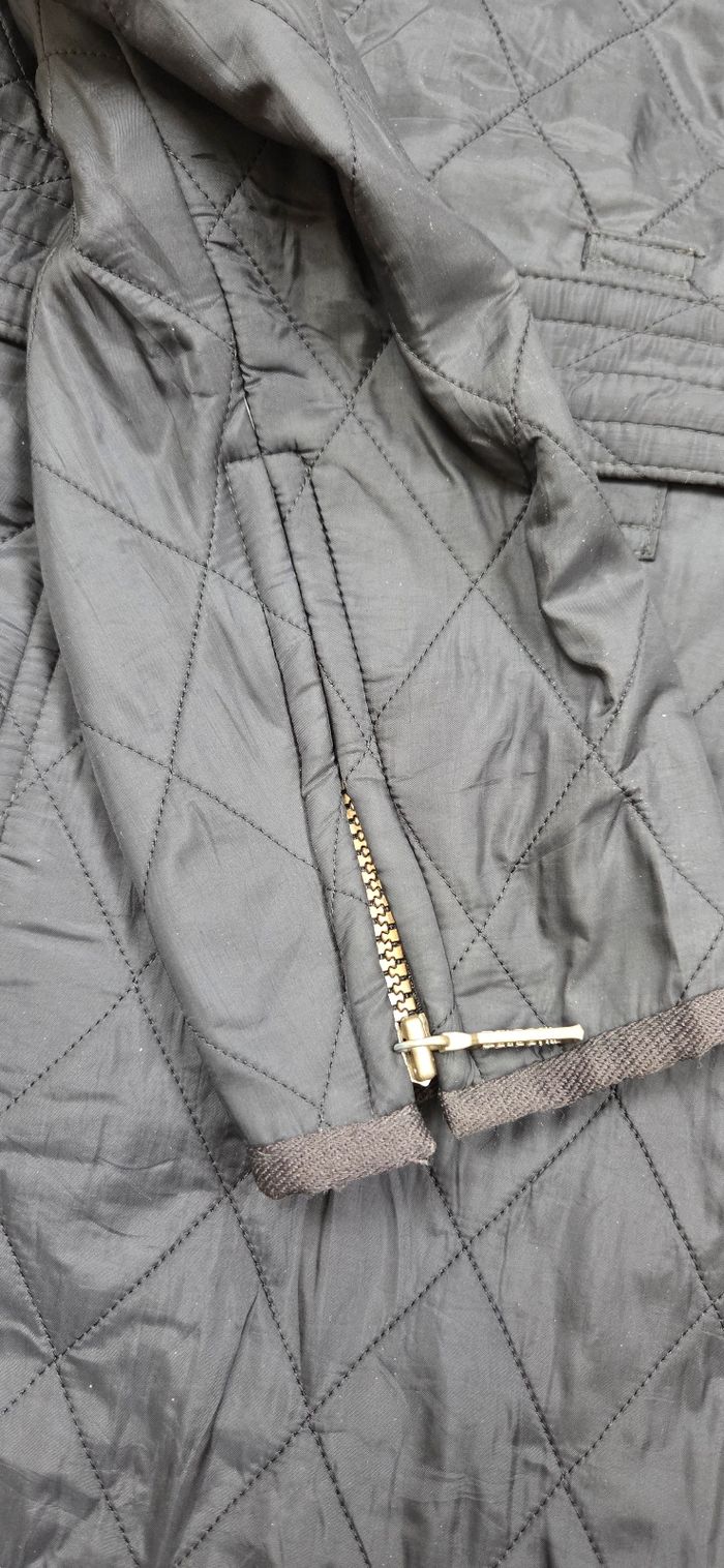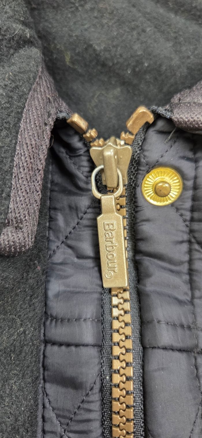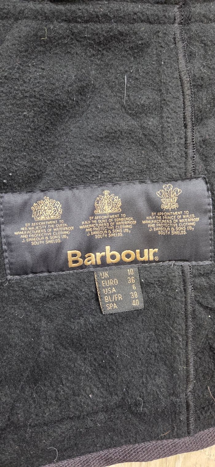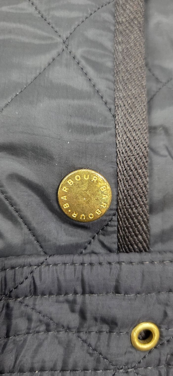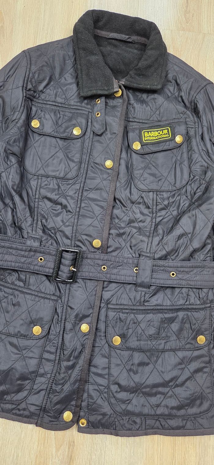 Veste matelassée Barbour International noire, style motard avec ceinture à la taille pour une coupe ajustée et élégante Modèle chaud avec doublure intérieure polaire, idéal pour l’automne et l’hiver Fermeture zippée avec boutons pression dorés siglés Barbour, plusieurs poches pratiques à l’avant Pièce intemporelle et de très bonne qualité, facile à porter au quotidien avec un jean ou une tenue plus habillée État : Très bon état général Taille : UK 10 / EUR 36 / FR 38 (femme) Mesures : Longueur : 68 cm Aisselles : 47 cm Longueur manches : 57 cm Envoi sous 24h