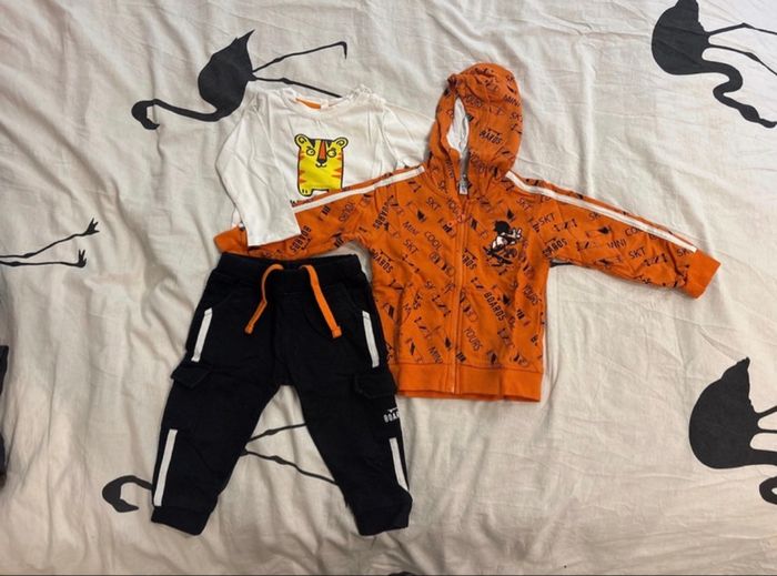 Parfait état 1 veste de survêtement avec capuche, 1 bas de survêtement, 1 tee shirt manches longues