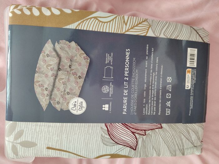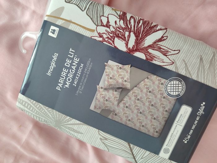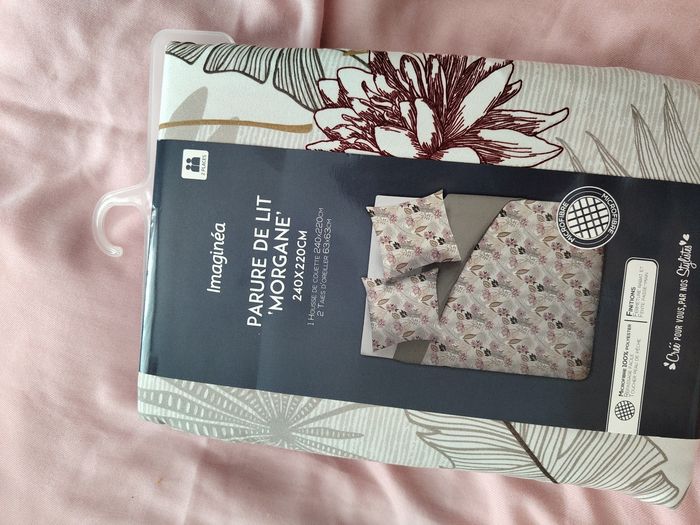 Bonjour, Parure de lit Morgane pour deux personnes, disponible 240*220CM tout neuf, jamais utilisé. - Housse de couette 240*220CM - 2 Taies d'oreillers 63*63CM