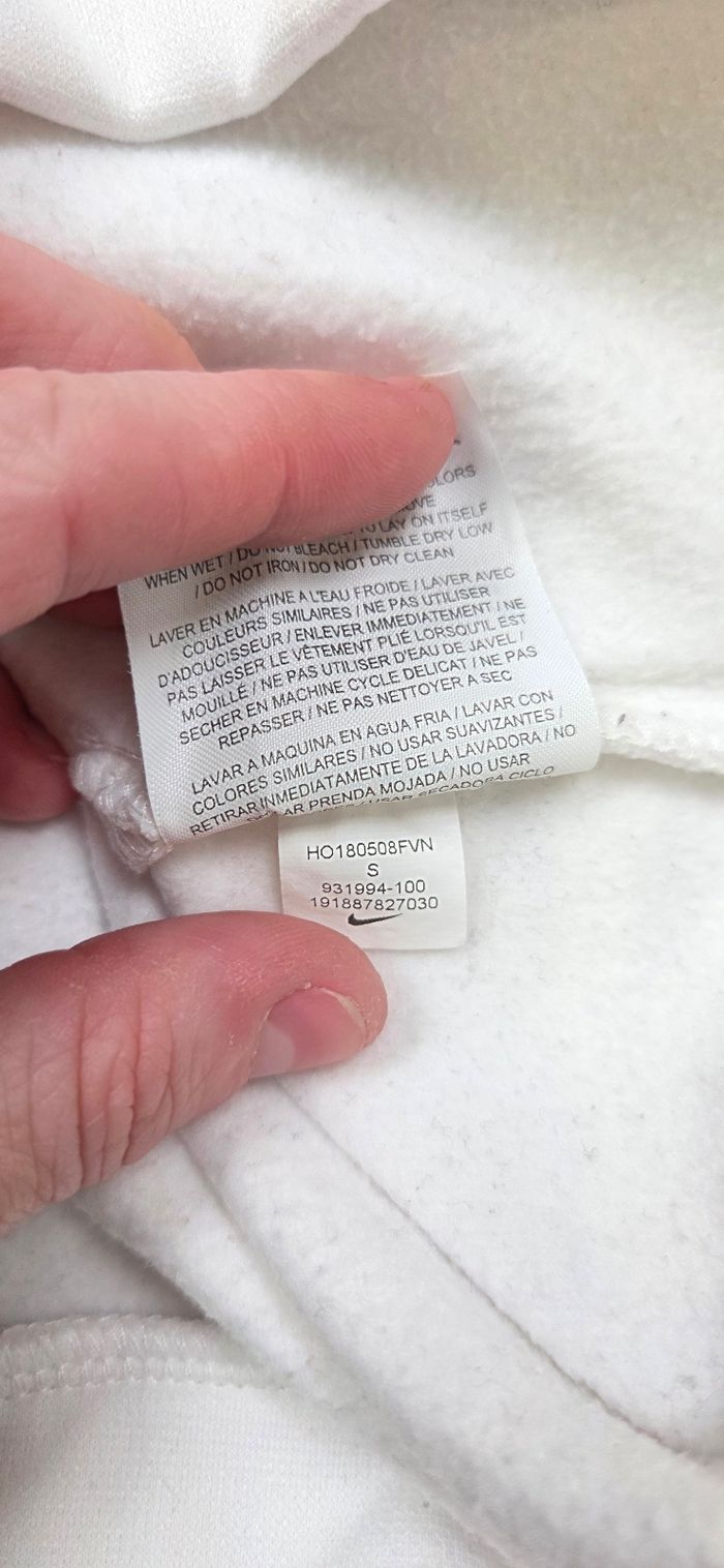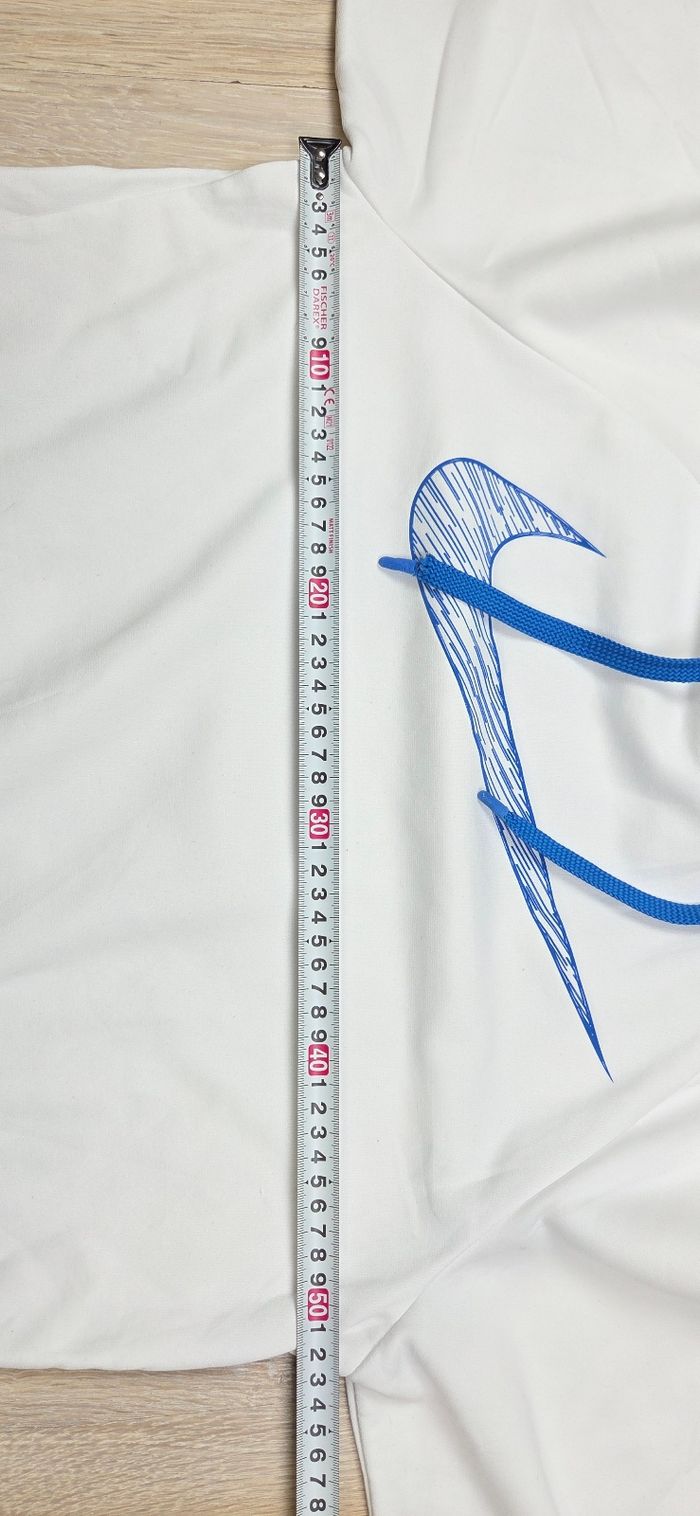 Sweat à capuche Nike Dri-Fit blanc avec grand logo bleu sur la poitrine, style sportwear moderne et facile à porter au quotidien Matière technique en polyester avec intérieur doux et chaud, idéal pour le sport ou les sorties décontractées Capuche avec cordons bleus contrastants et poche kangourou pratique Coupe confortable et respirante grâce à la technologie Dri-Fit État : Très bon état général Taille : S (homme) Mesures : Longueur : 71 cm Aisselles : 52 cm Longueur manches : 62 cm Envoi sous 24h