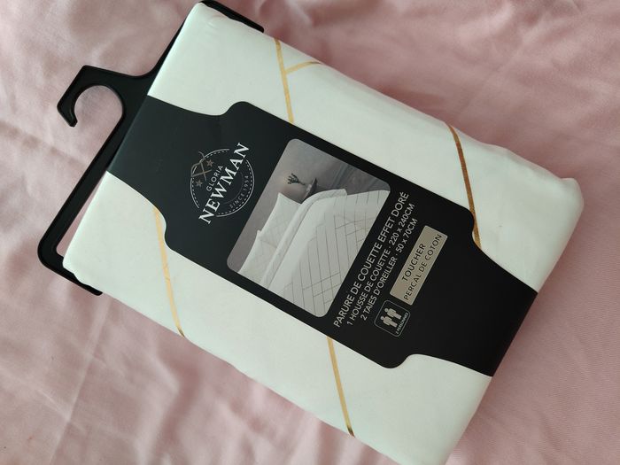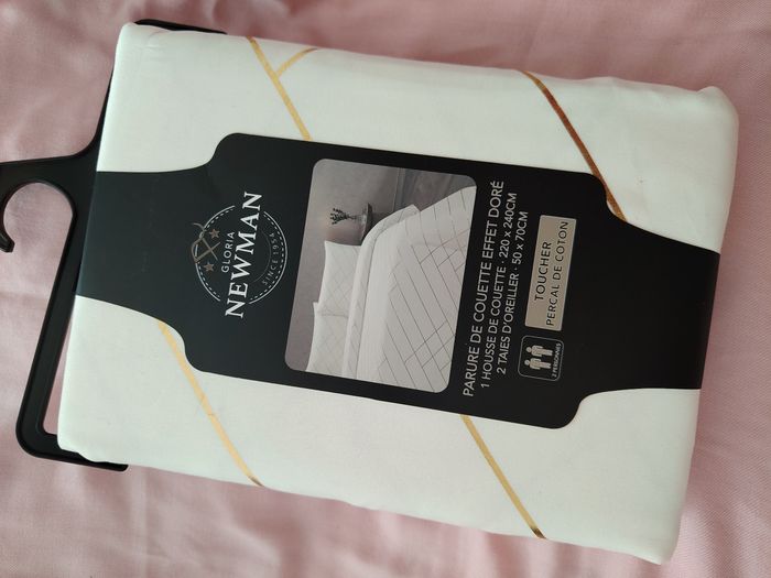 Bonjour, Parure de lit New Man pour deux personnes, disponible 240*220CM tout neuf, jamais utilisé. -1 Housse de couette 240*220CM - 2 Taies d'oreillers 63*63CM