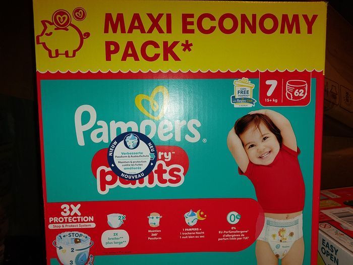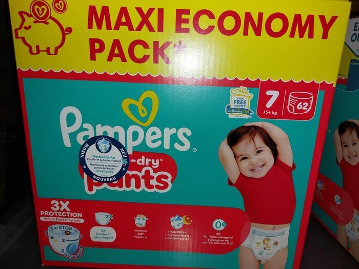 Deux cartons de couches pampers pants taille 7 de 124 couches.