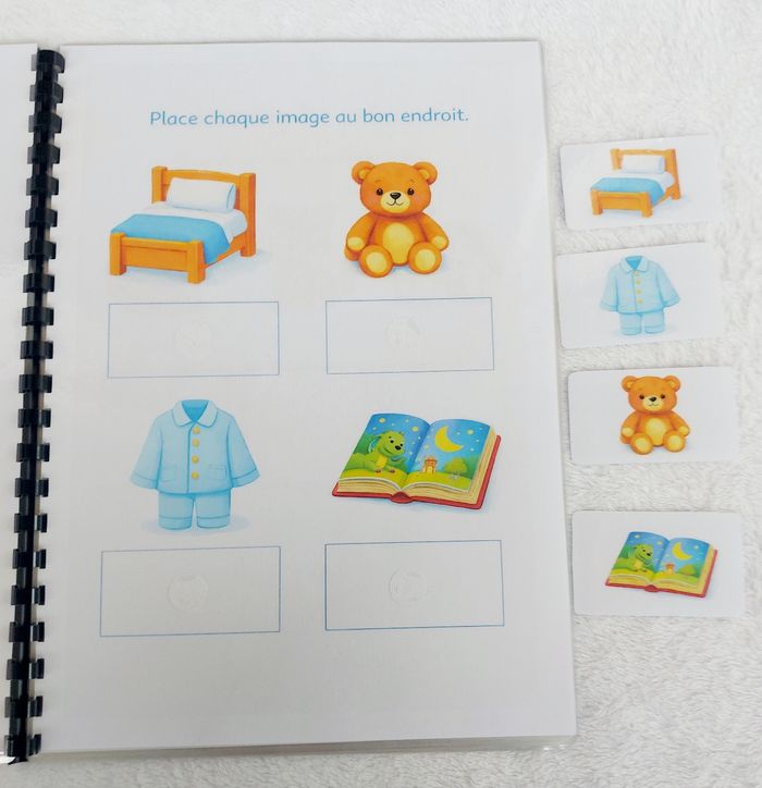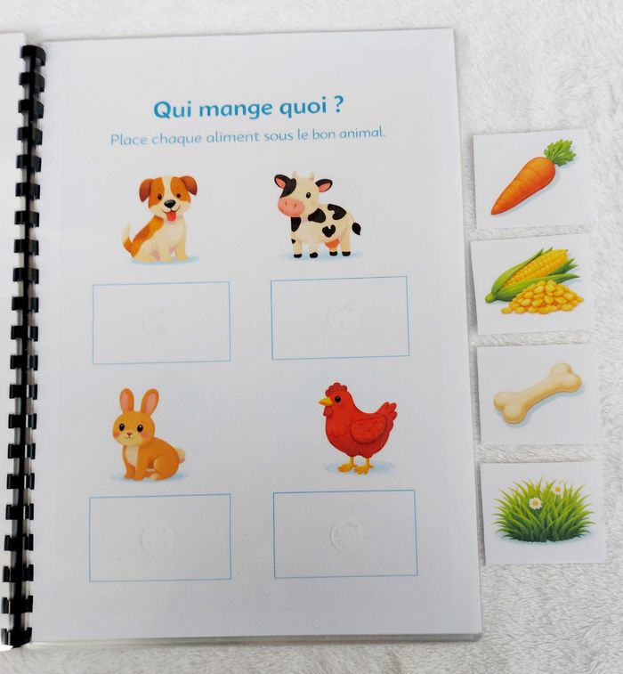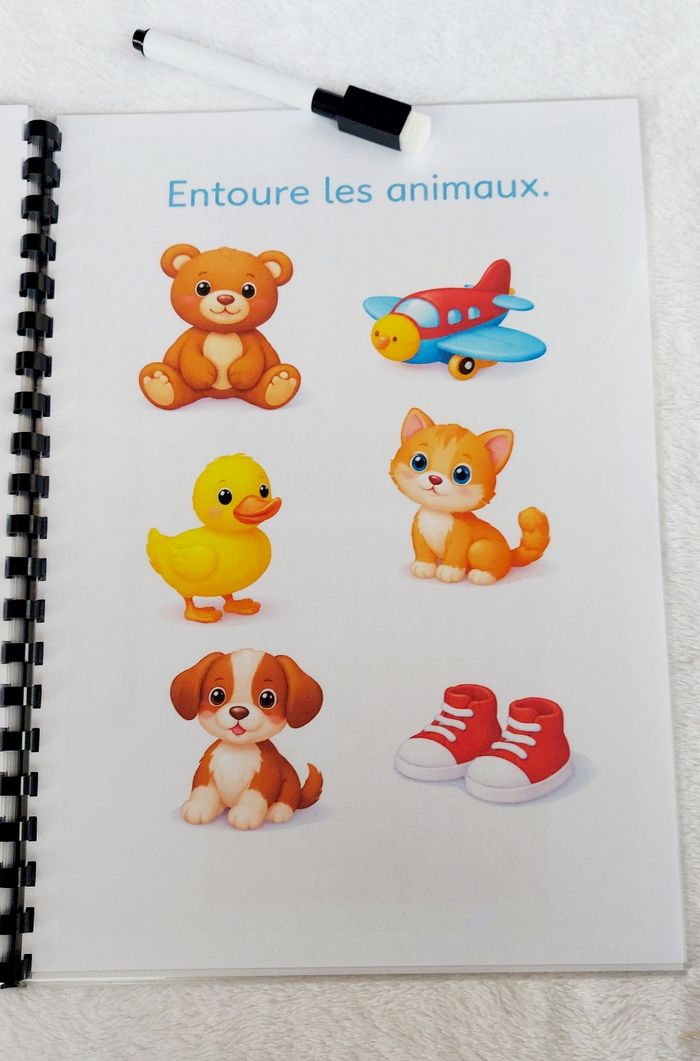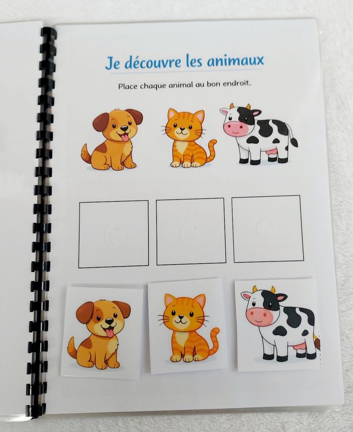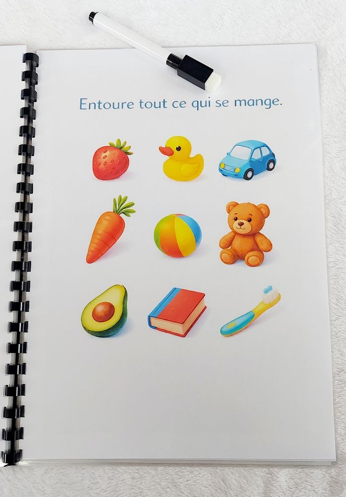 🌿 Livret d’activités “J’explore & je découvre” 🌿 Dès 2/3 ans Un livret éducatif composé de 10 pages d’activités (11 pages au total avec la couverture). ✨ Activités variées et adaptées : ✔ Associer ✔ Observer ✔ Classer ✔ Reconnaître ✔ Développer la motricité fine 🖍 Pages plastifiées 🖍 Utilisable au feutre effaçable (type Velleda) 🖍 Éléments à scratch pour manipuler 🖍 Réutilisable à l’infini Idéal pour apprendre en s’amusant à la maison ou en déplacement. 📌 Création artisanale 📌 Fait avec soin 📌 Solide et durable ⚠️ Prix ferme – travail artisanal avec matériel inclus (scratch, plastification, impression).
