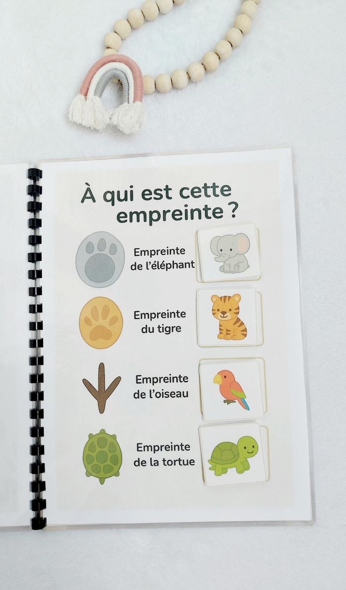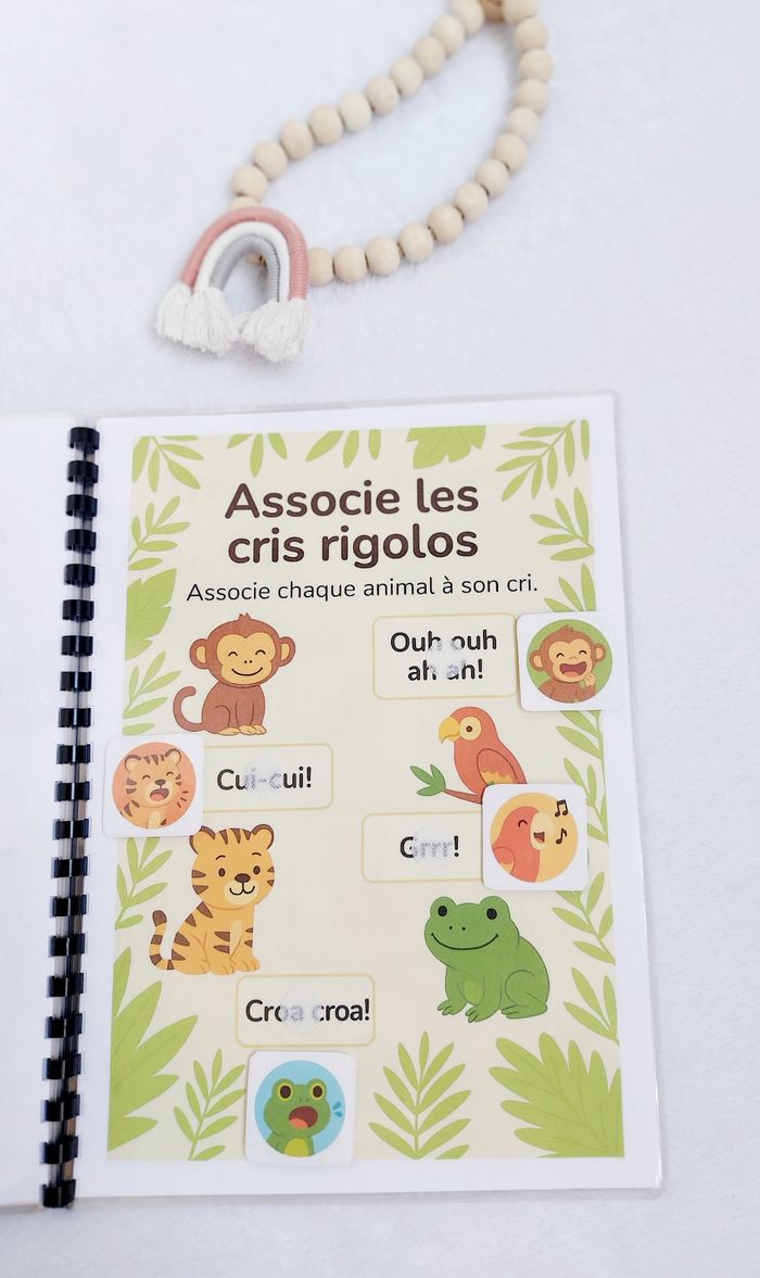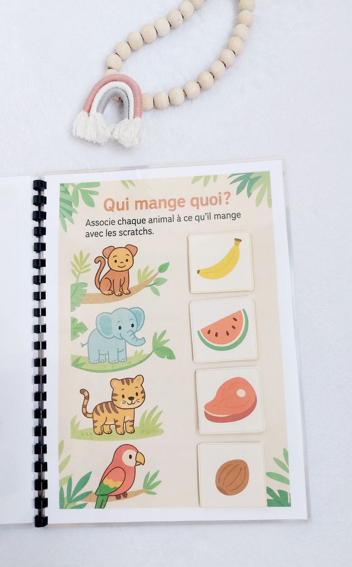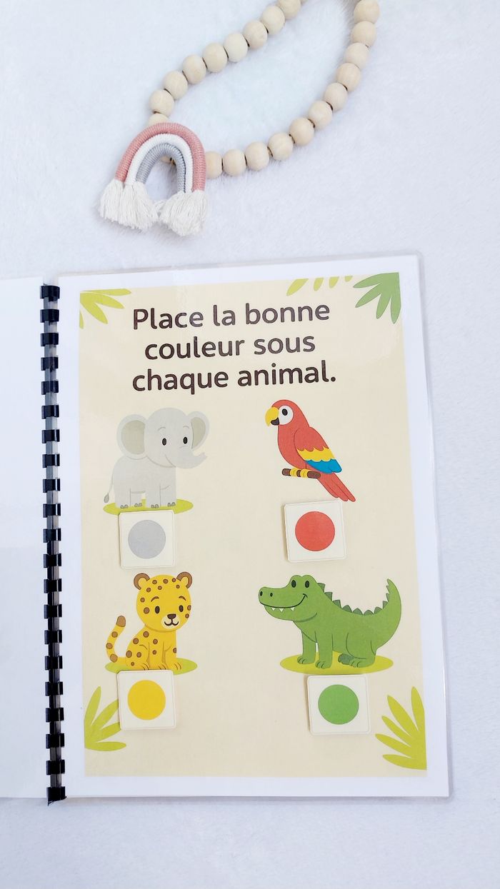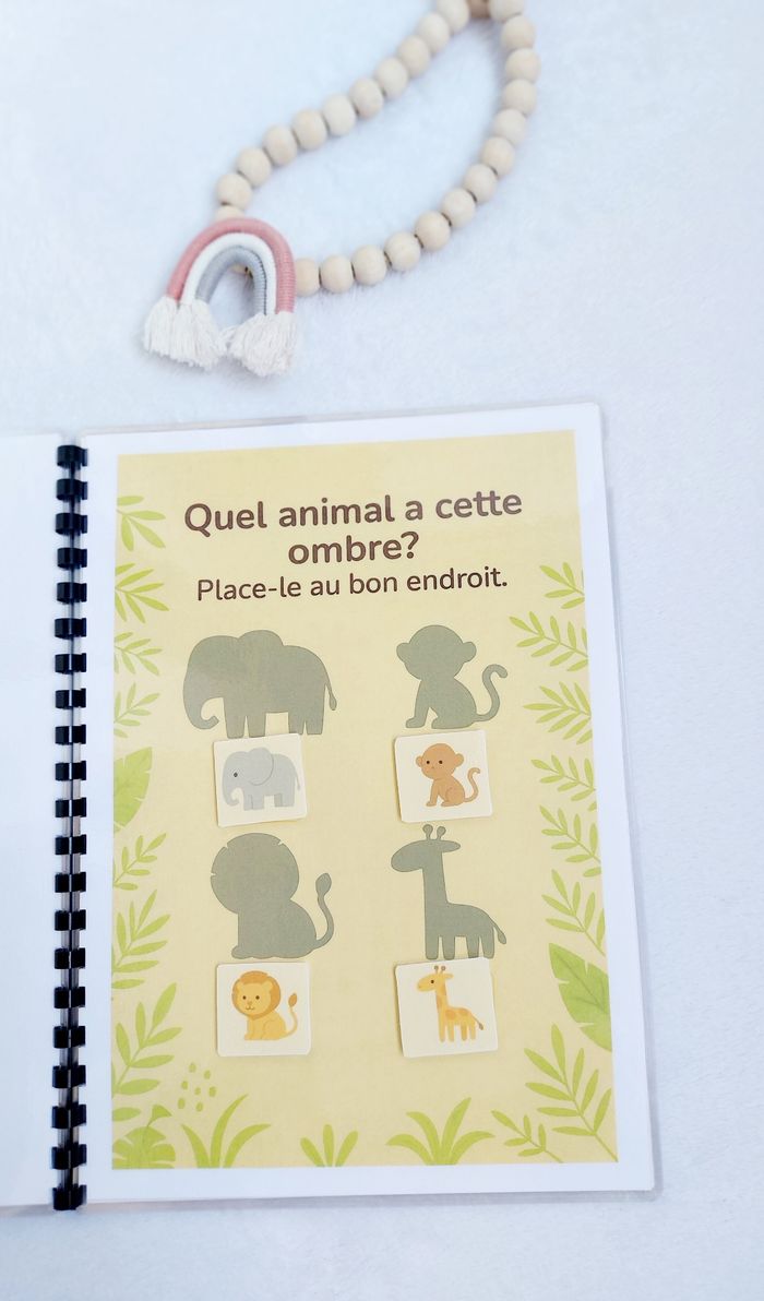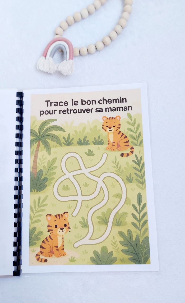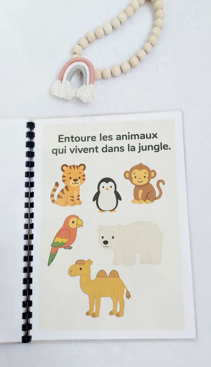 🌿 Livret d’activités – Thème Jungle 🐯🌴 Dès 2 ans Un livret ludique et éducatif spécialement conçu pour les tout-petits dès 2 ans. À travers l’univers de la jungle, votre enfant va apprendre en s’amusant avec des activités adaptées à son âge : ✔️ Associer et reconnaître ✔️ Observer et comparer ✔️ Trier et classer ✔️ Développer la motricité fine ✔️ Enrichir le vocabulaire ✨ Manipulation avec scratch ✨ Exercices simples et visuels ✨ Pages plastifiées ✨ Utilisable au feutre effaçable (type Velleda) ✨ Réutilisable à l’infini Idéal pour apprendre à la maison, en vacances ou pour occuper intelligemment les temps calmes. 📌 Création artisanale 📌 Fait avec soin 📌 Solide et durable ⚠️ Prix ferme – travail artisanal avec impression, plastification et scratch inclus.